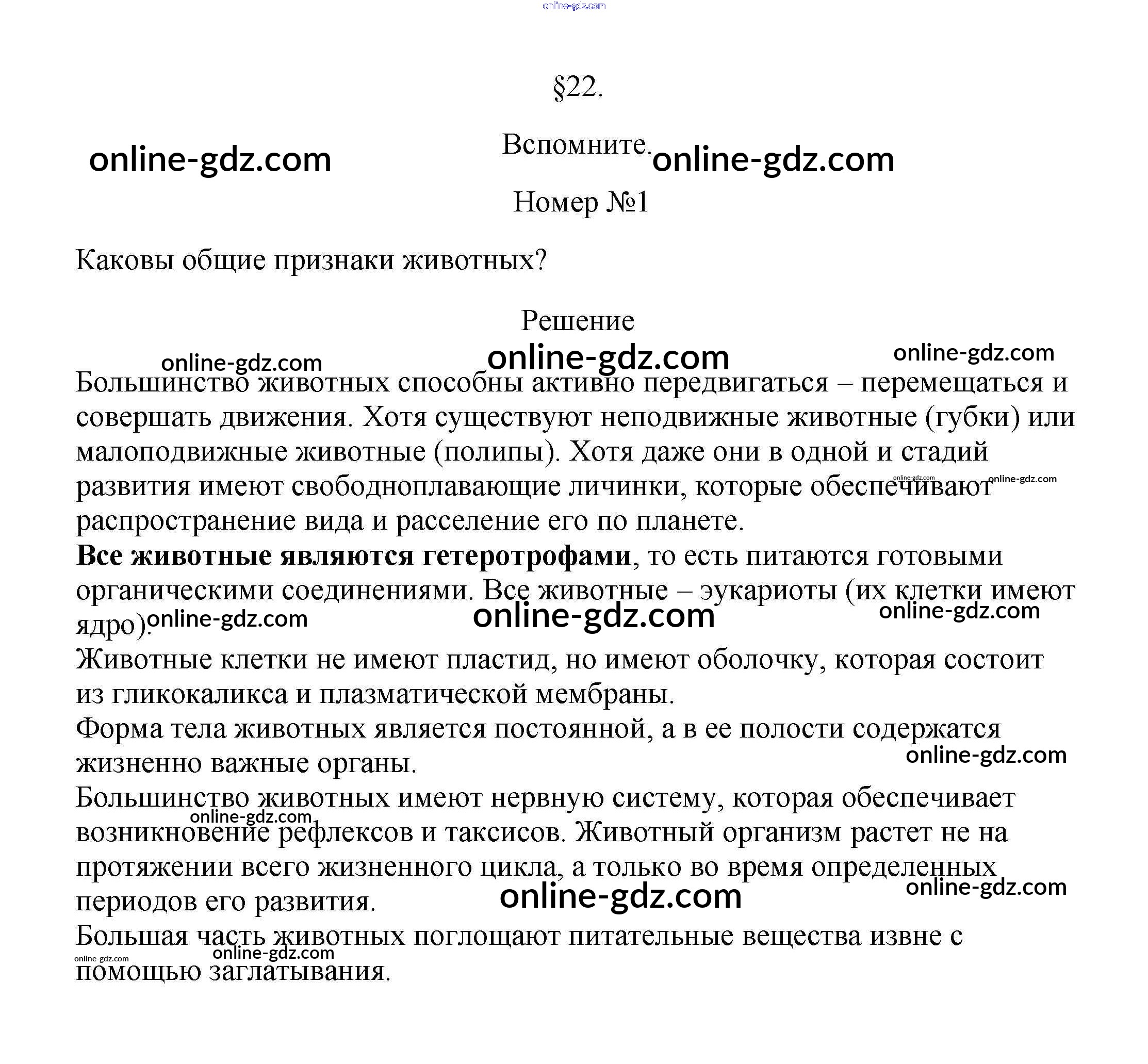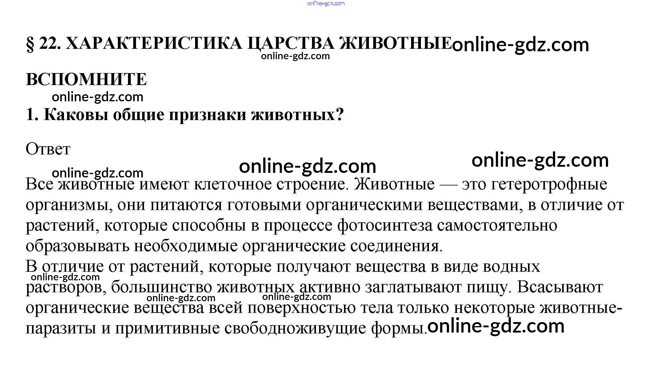 Готовые домашние задания по Биологии за 5, 6 класс Учебник Пасечник, Суматохин Линия жизни 2020 - Вспомните §22. Характеристика царства Животные 1