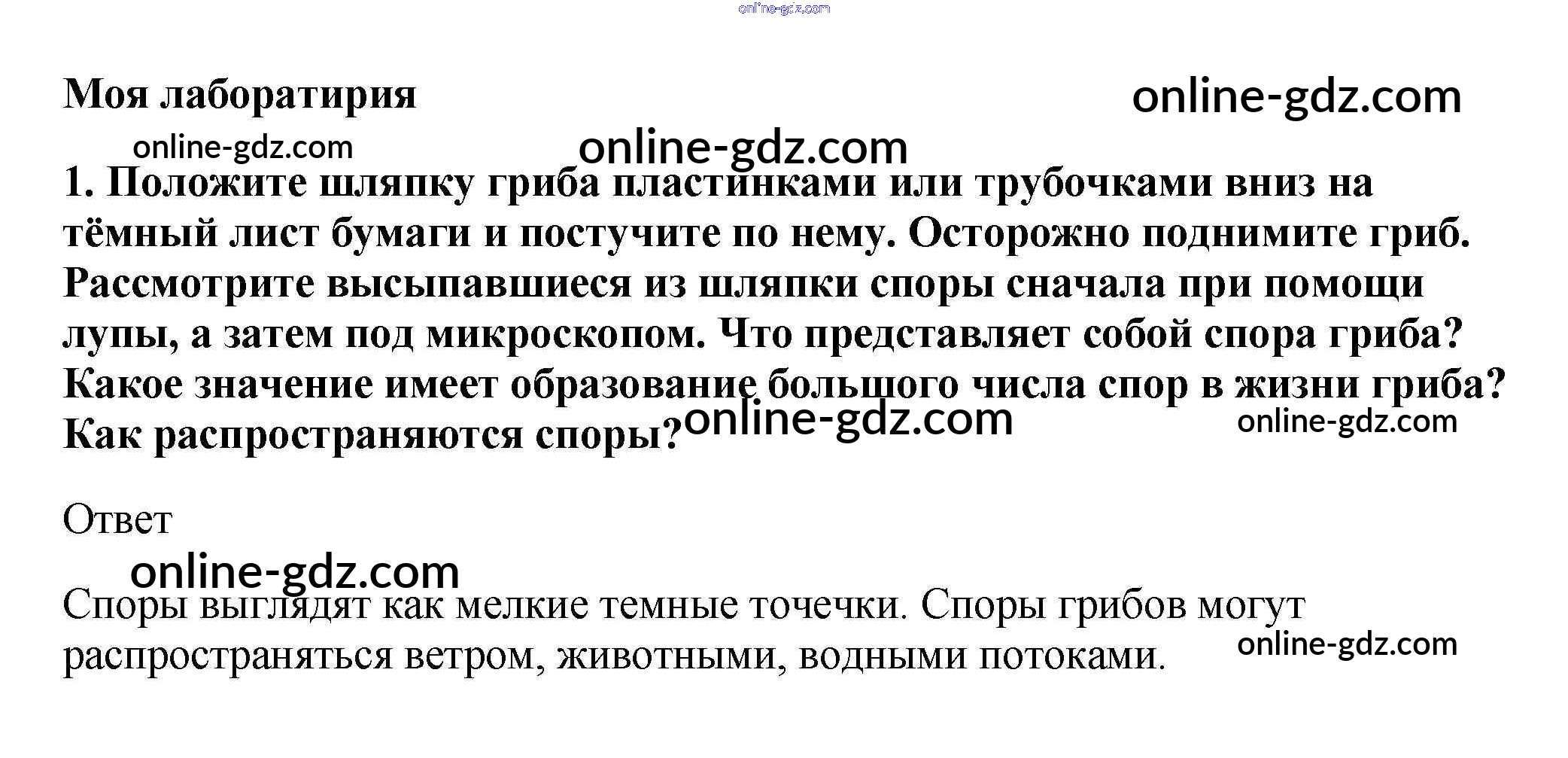 Готовые домашние задания по Биологии за 5, 6 класс Учебник Пасечник, Суматохин Линия жизни 2020 - Моя лаборатория §23. Характеристика царства Грибы 1