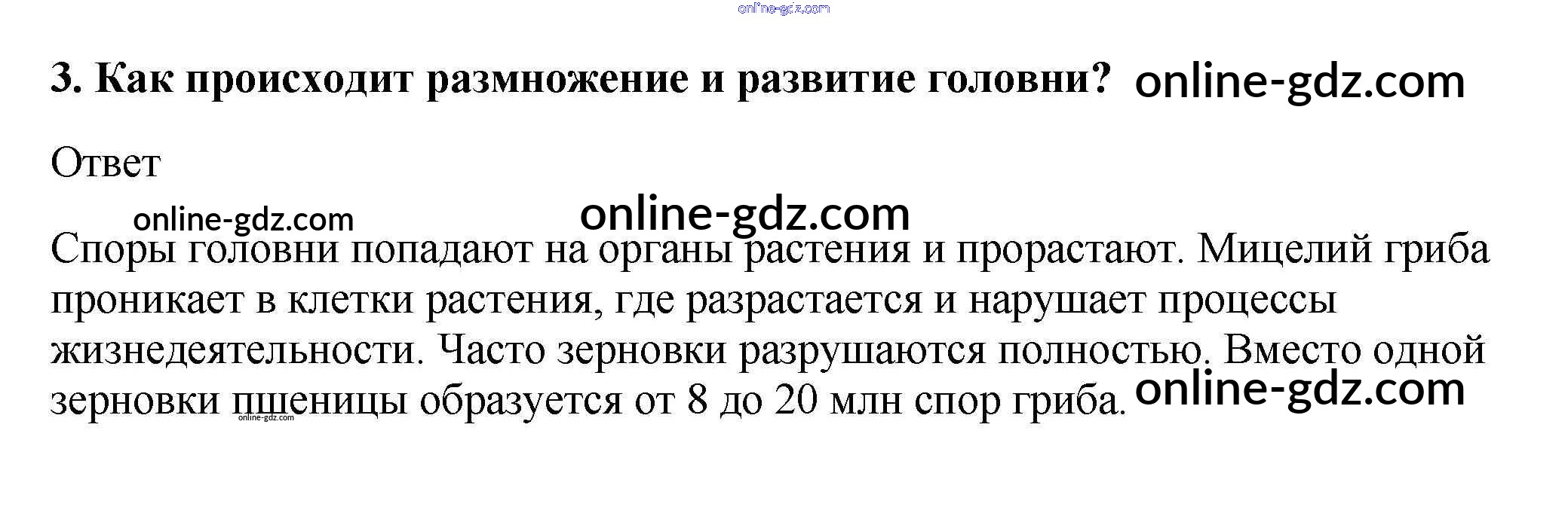 Готовые домашние задания по Биологии за 5, 6 класс Учебник Пасечник, Суматохин Линия жизни 2020 - Вопросы §25. Грибы — паразиты растений, животных, человека 3