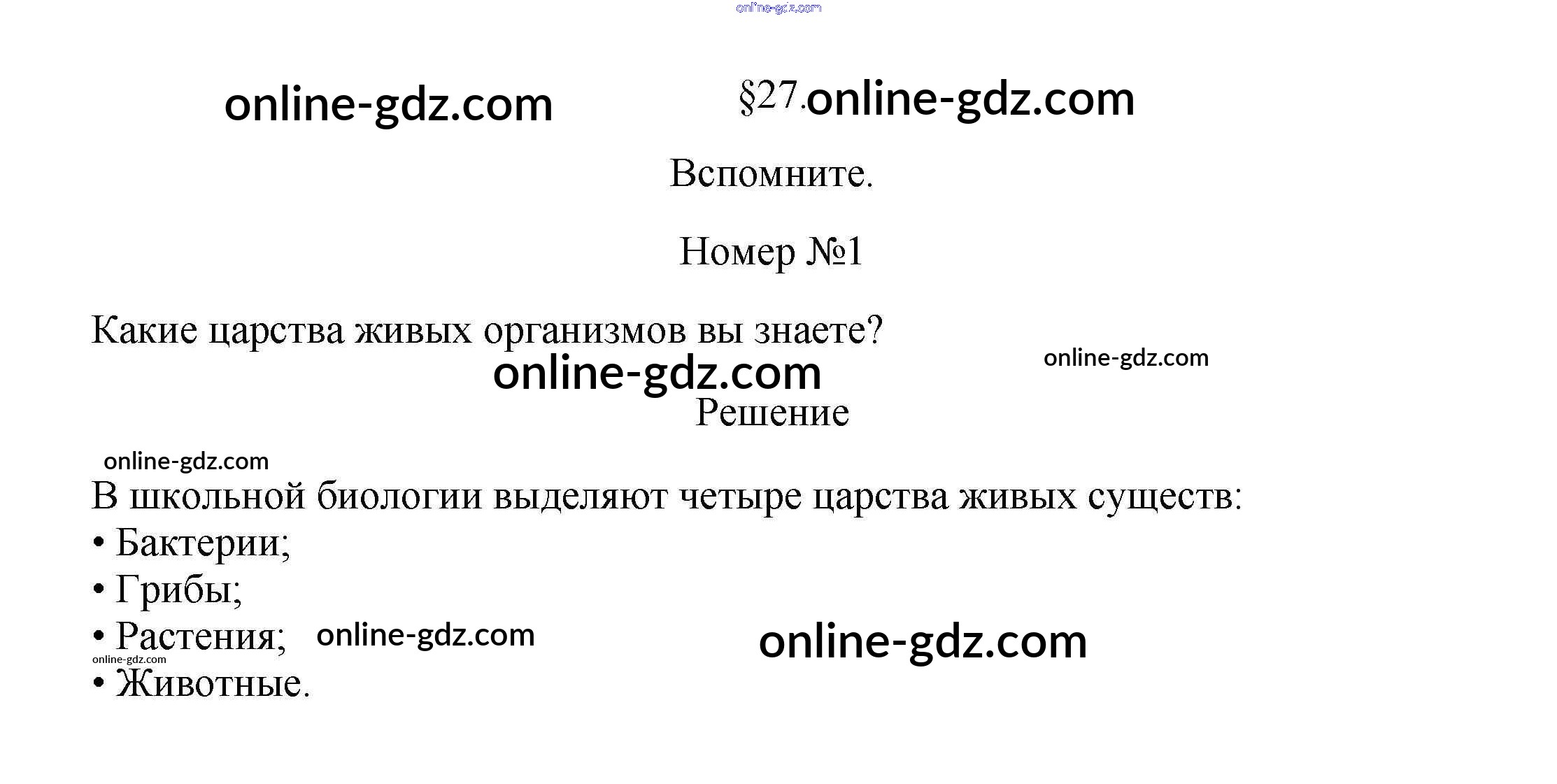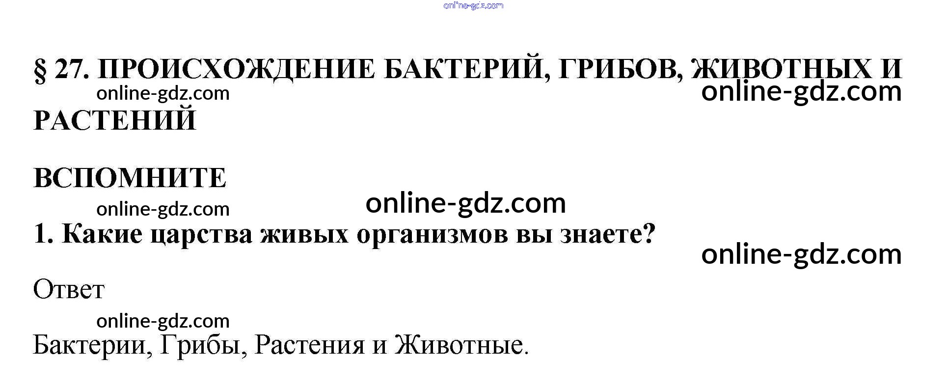 Готовые домашние задания по Биологии за 5, 6 класс Учебник Пасечник, Суматохин Линия жизни 2020 - Вспомните §27. Происхождение бактерий, грибов, животных 1