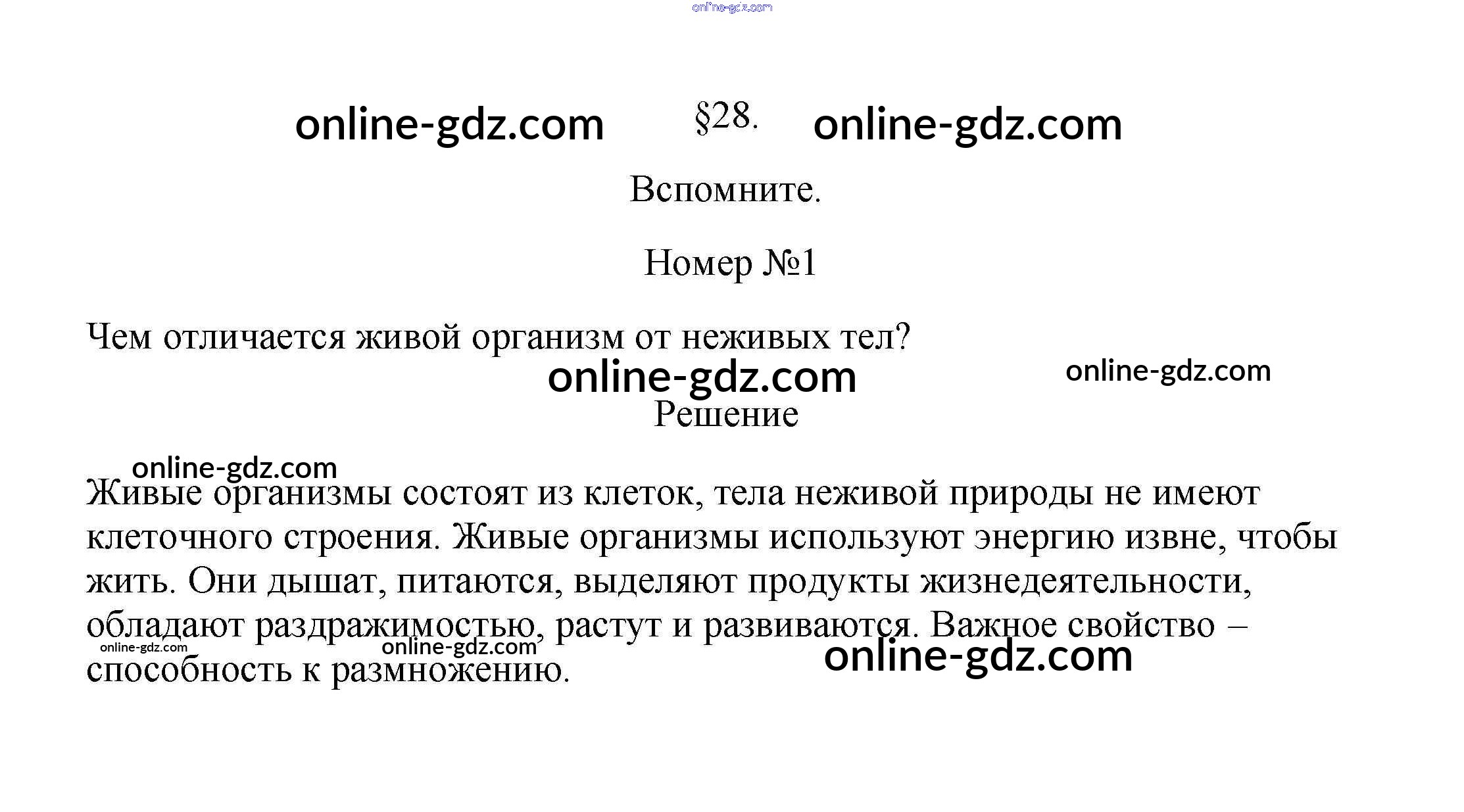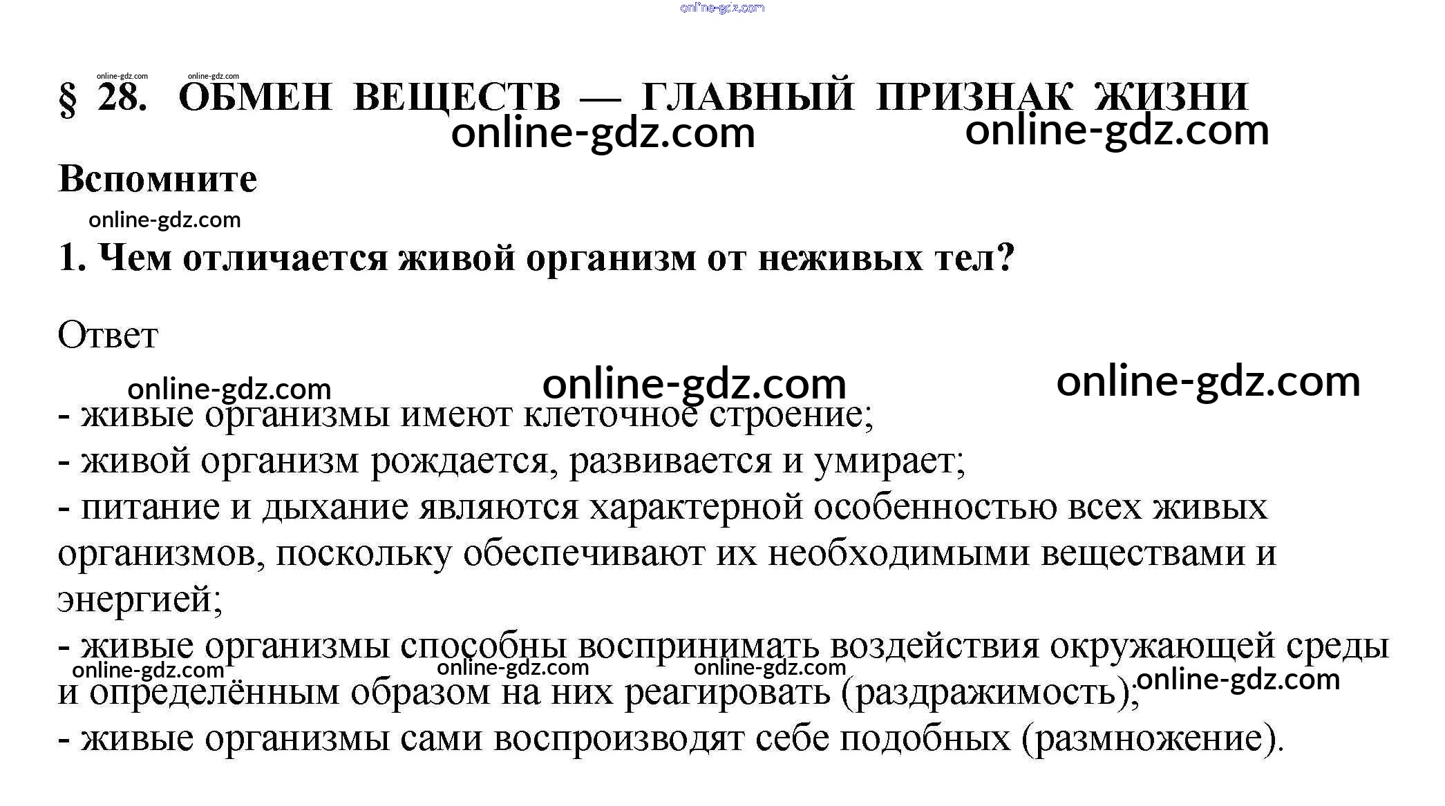 Готовые домашние задания по Биологии за 5, 6 класс Учебник Пасечник, Суматохин Линия жизни 2020 - Вспомните §28. Обмен веществ — главный признак жизни 1