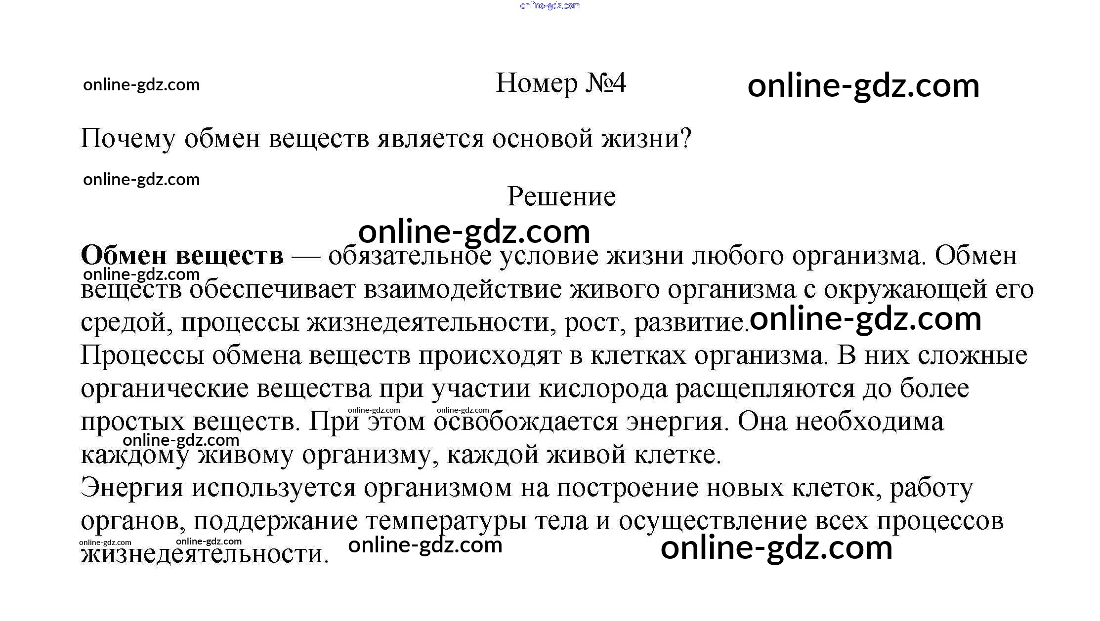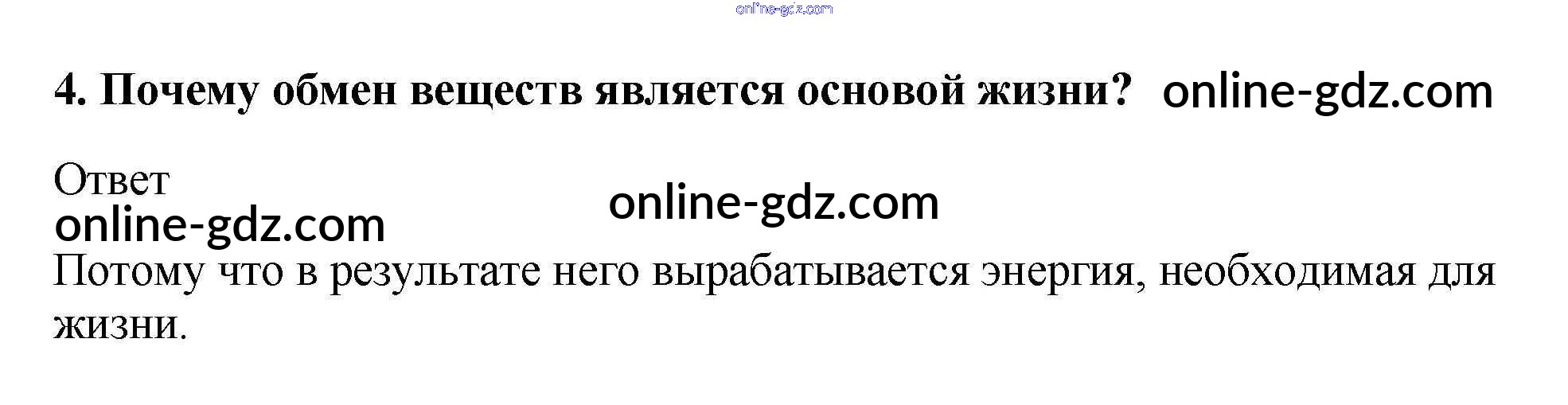 Готовые домашние задания по Биологии за 5, 6 класс Учебник Пасечник, Суматохин Линия жизни 2020 - Вопросы §28. Обмен веществ — главный признак жизни 4