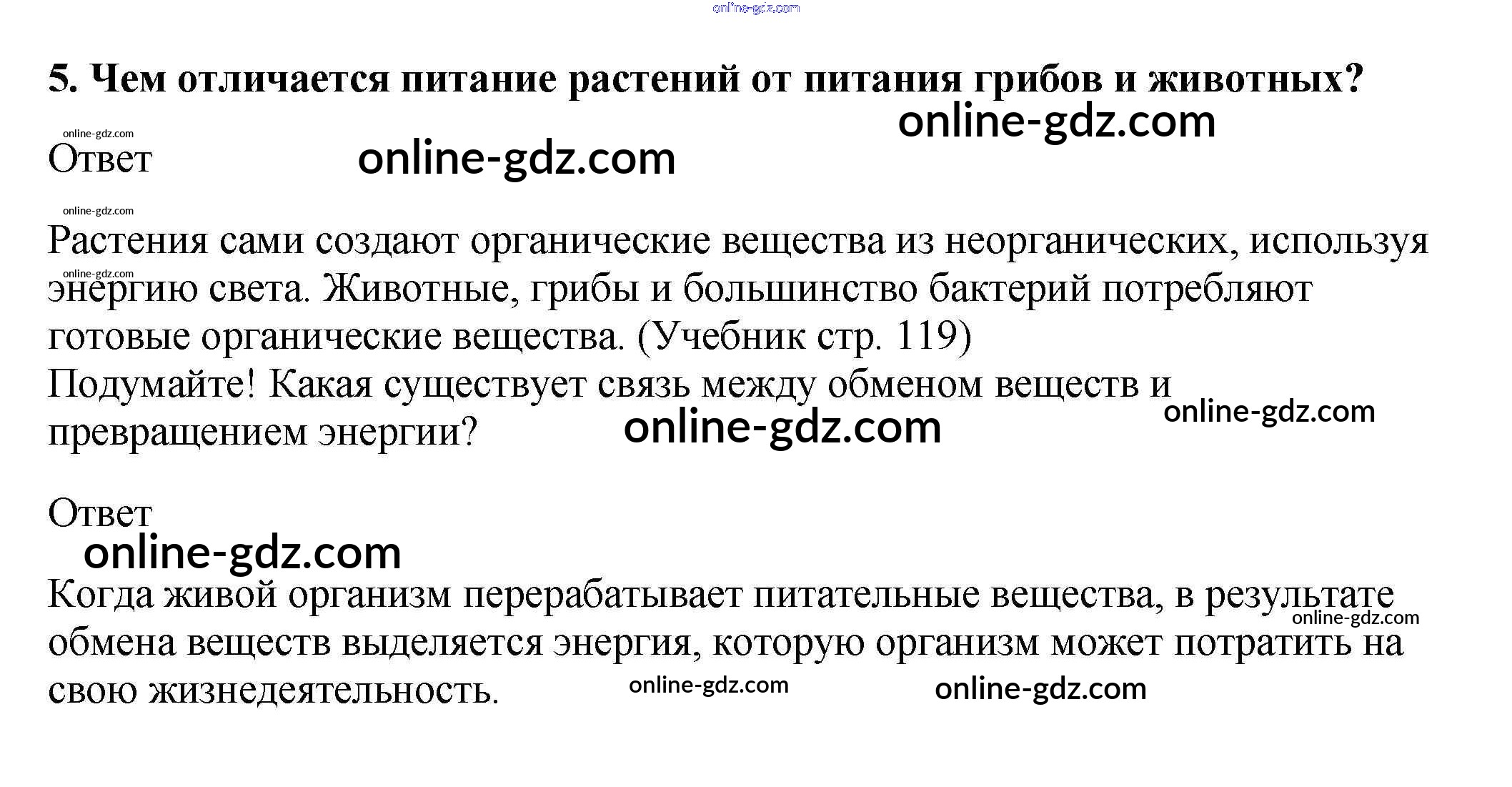 Готовые домашние задания по Биологии за 5, 6 класс Учебник Пасечник, Суматохин Линия жизни 2020 - Вопросы §28. Обмен веществ — главный признак жизни 5