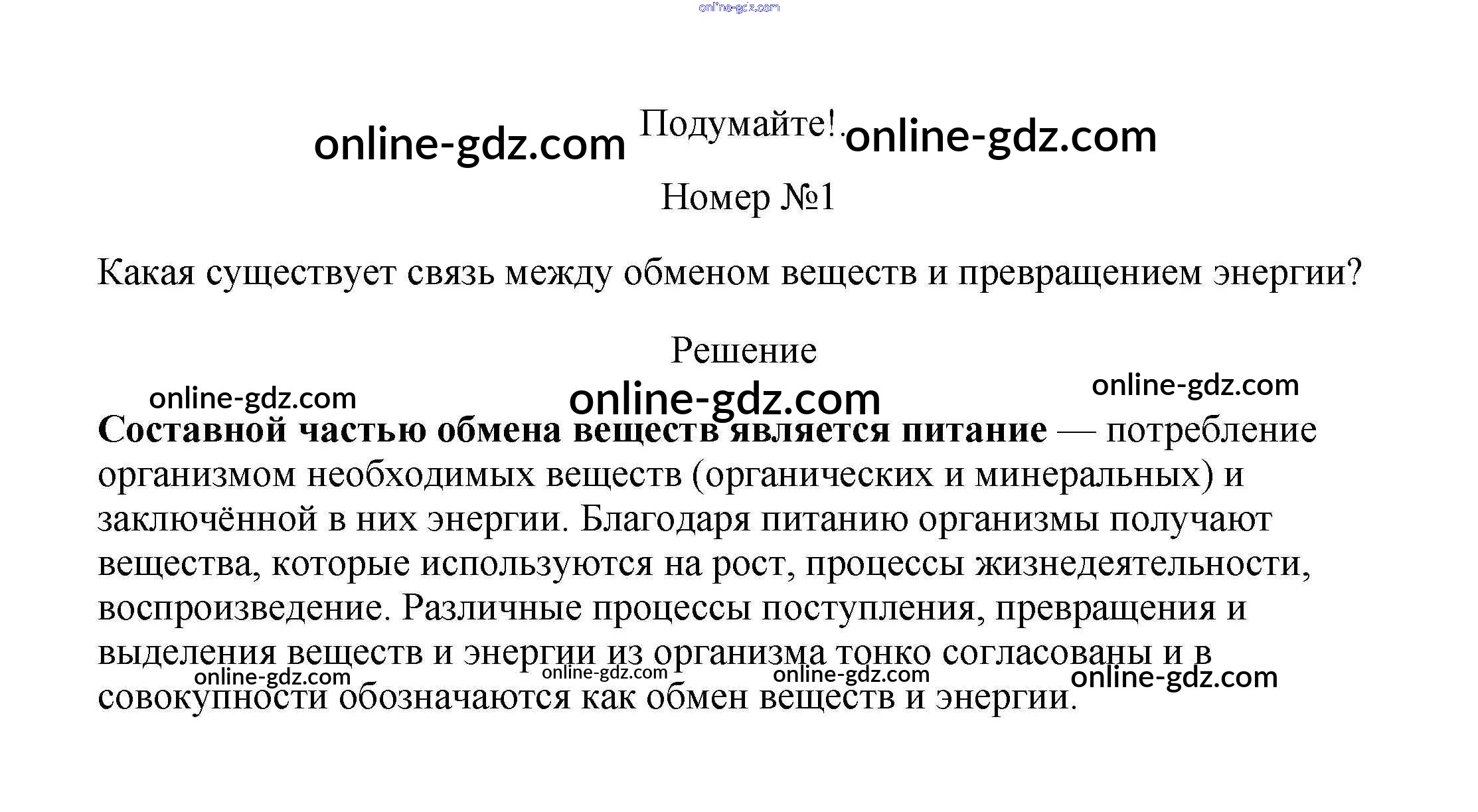 Готовые домашние задания по Биологии за 5, 6 класс Учебник Пасечник, Суматохин Линия жизни 2020 - Подумайте §28. Обмен веществ — главный признак жизни 1