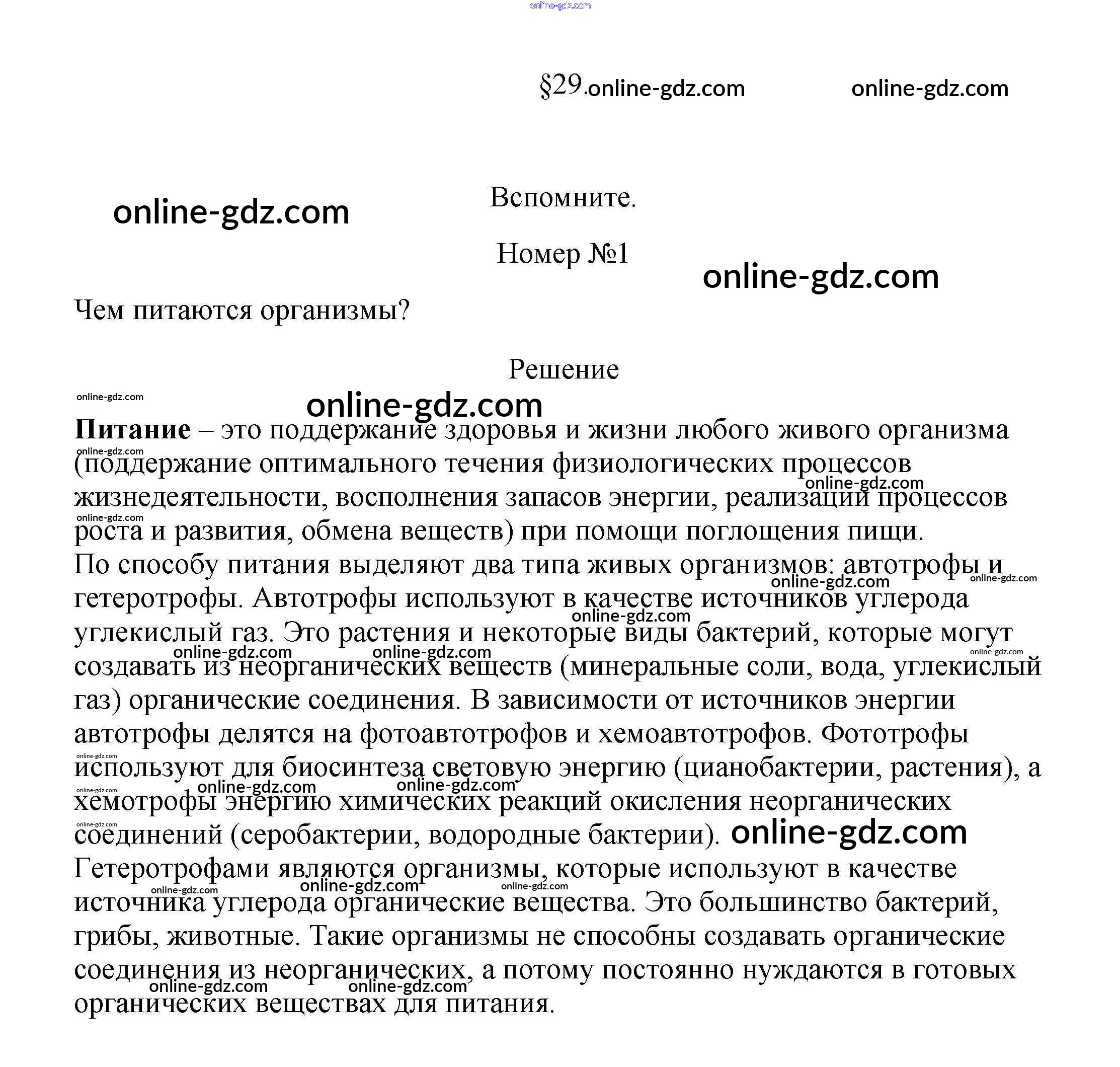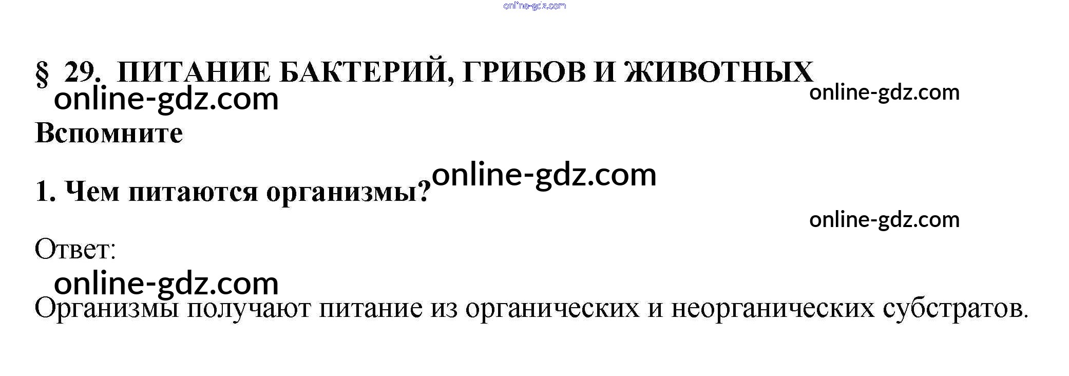 Готовые домашние задания по Биологии за 5, 6 класс Учебник Пасечник, Суматохин Линия жизни 2020 - Вспомните §29. Питание бактерий, грибов и животных 1