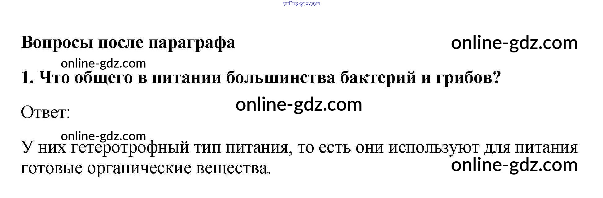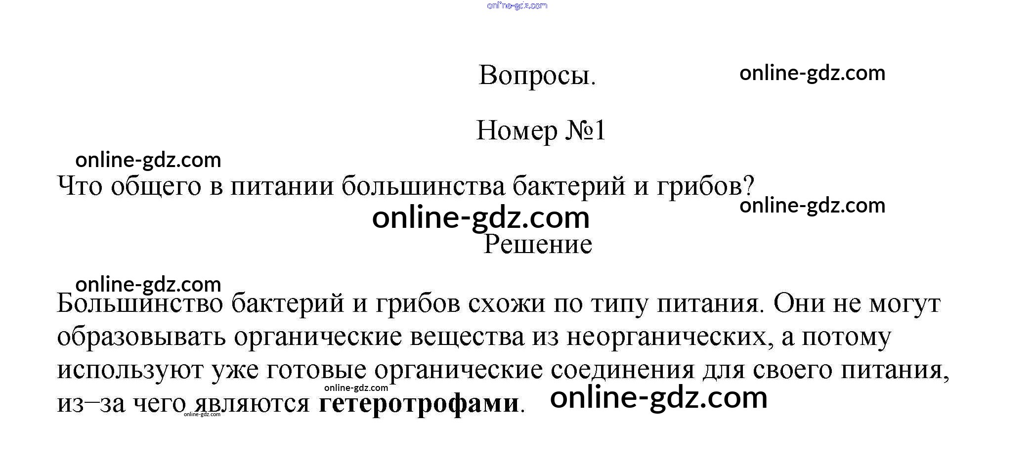Готовые домашние задания по Биологии за 5, 6 класс Учебник Пасечник, Суматохин Линия жизни 2020 - Вопросы §29. Питание бактерий, грибов и животных 1