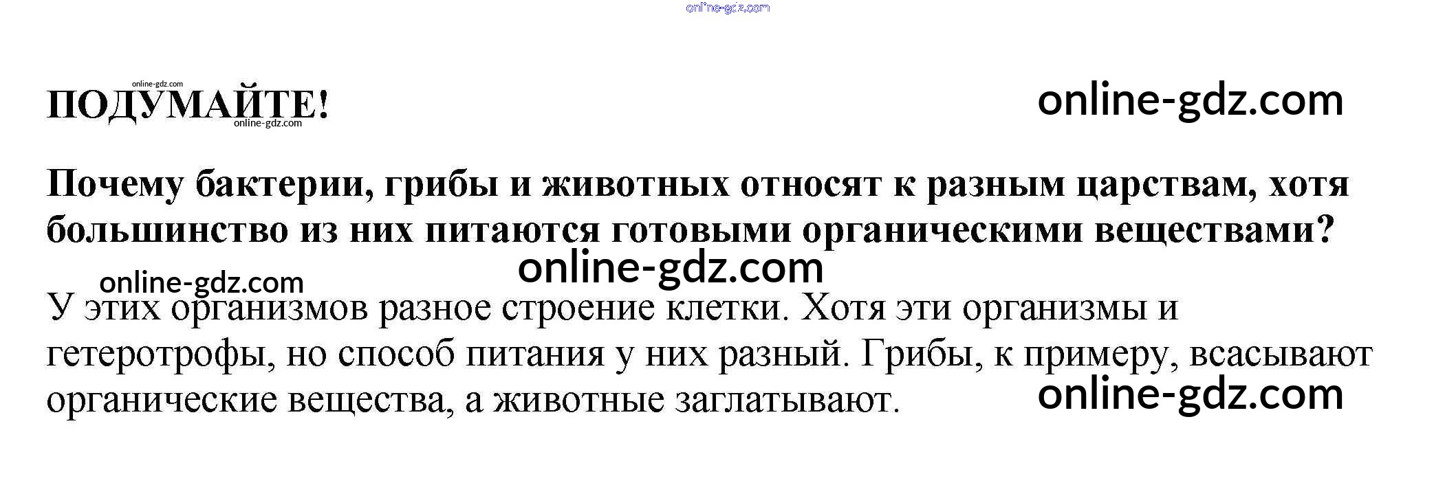 Готовые домашние задания по Биологии за 5, 6 класс Учебник Пасечник, Суматохин Линия жизни 2020 - Подумайте §29. Питание бактерий, грибов и животных 1