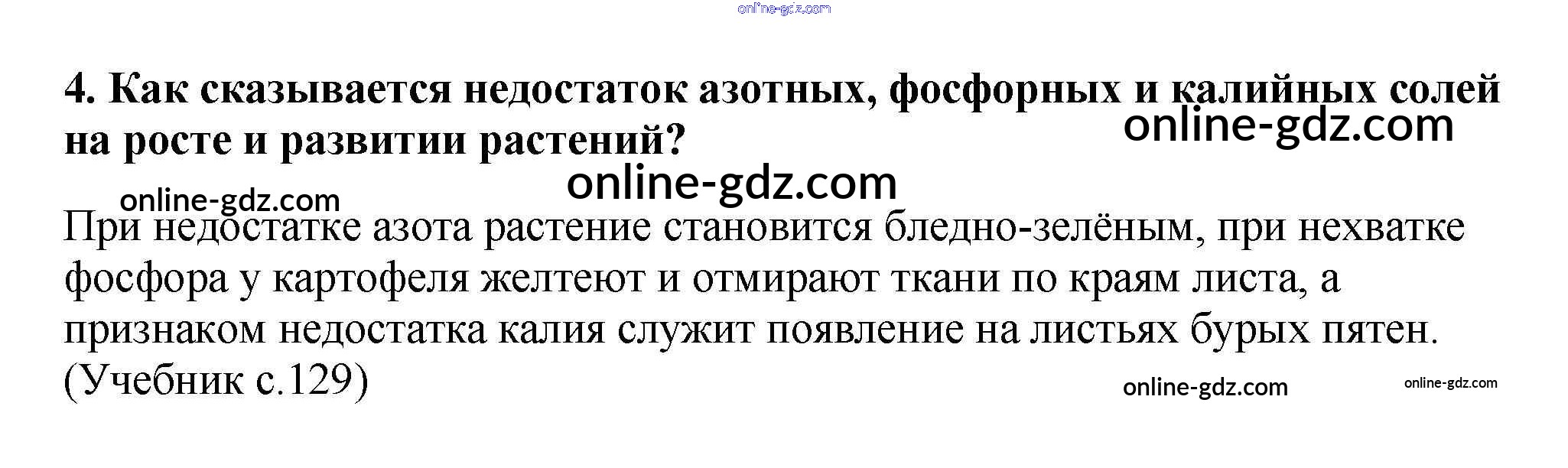 Готовые домашние задания по Биологии за 5, 6 класс Учебник Пасечник, Суматохин Линия жизни 2020 - Вопросы §30. Питание растений. Удобрения 4