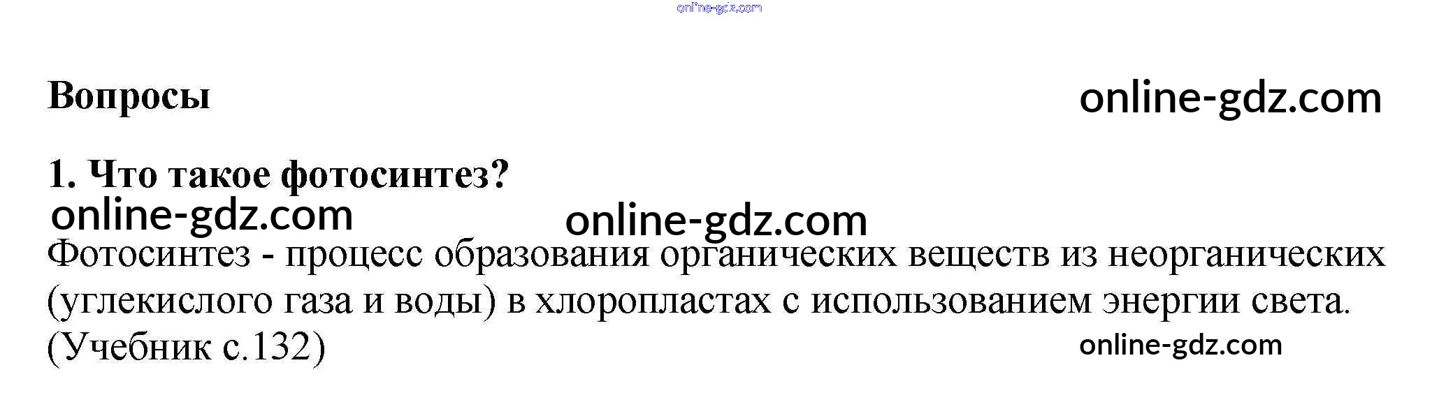 Готовые домашние задания по Биологии за 5, 6 класс Учебник Пасечник, Суматохин Линия жизни 2020 - Вопросы §31. Фотосинтез 1