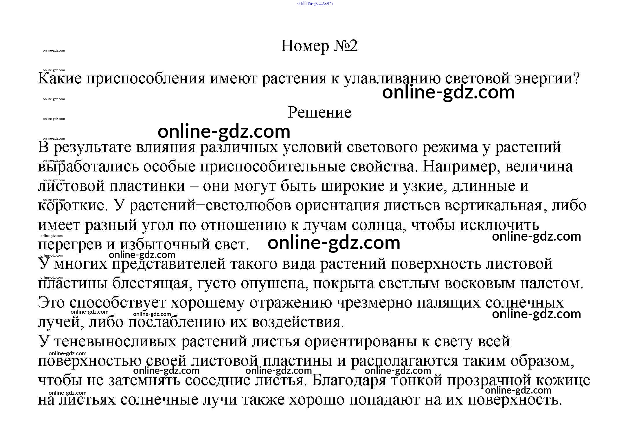 Готовые домашние задания по Биологии за 5, 6 класс Учебник Пасечник, Суматохин Линия жизни 2020 - Вопросы §31. Фотосинтез 2