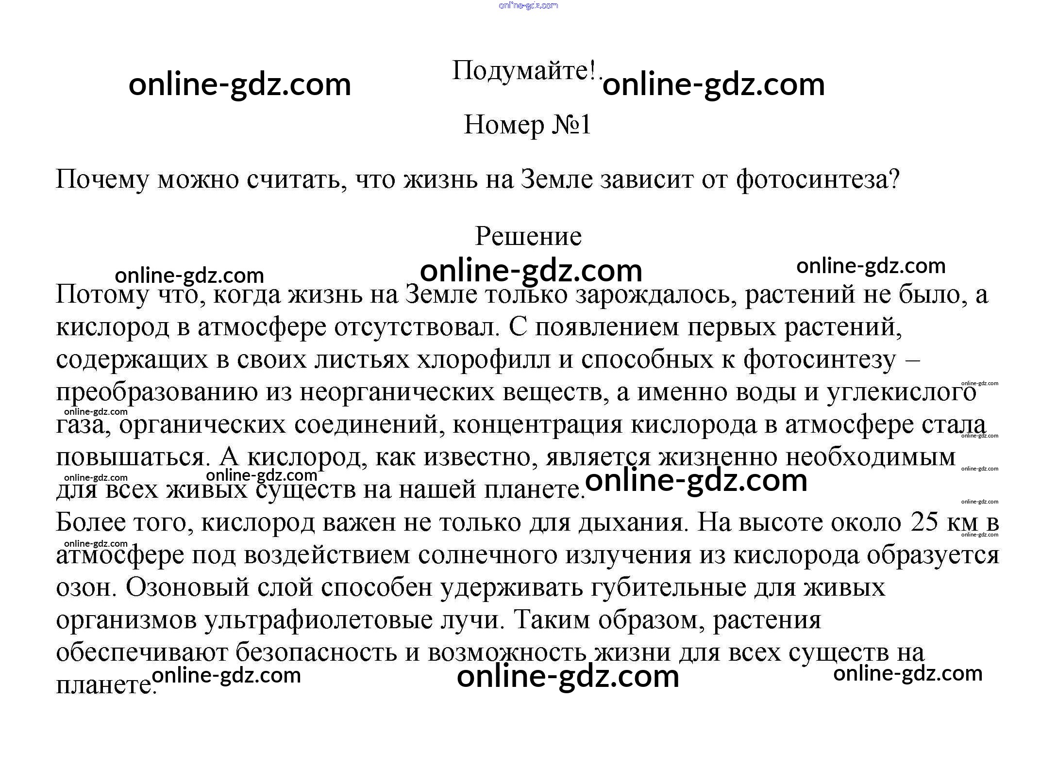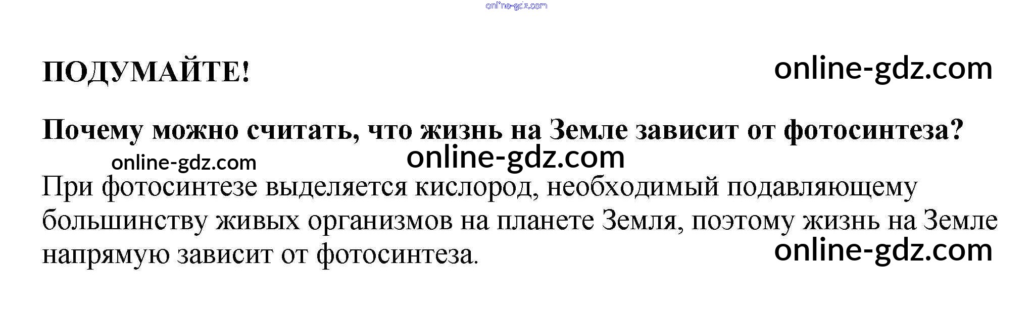 Готовые домашние задания по Биологии за 5, 6 класс Учебник Пасечник, Суматохин Линия жизни 2020 - Подумайте §31. Фотосинтез 1