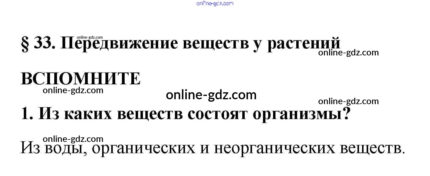 Готовые домашние задания по Биологии за 5, 6 класс Учебник Пасечник, Суматохин Линия жизни 2020 - Вспомните §33. Передвижение веществ у растений 1