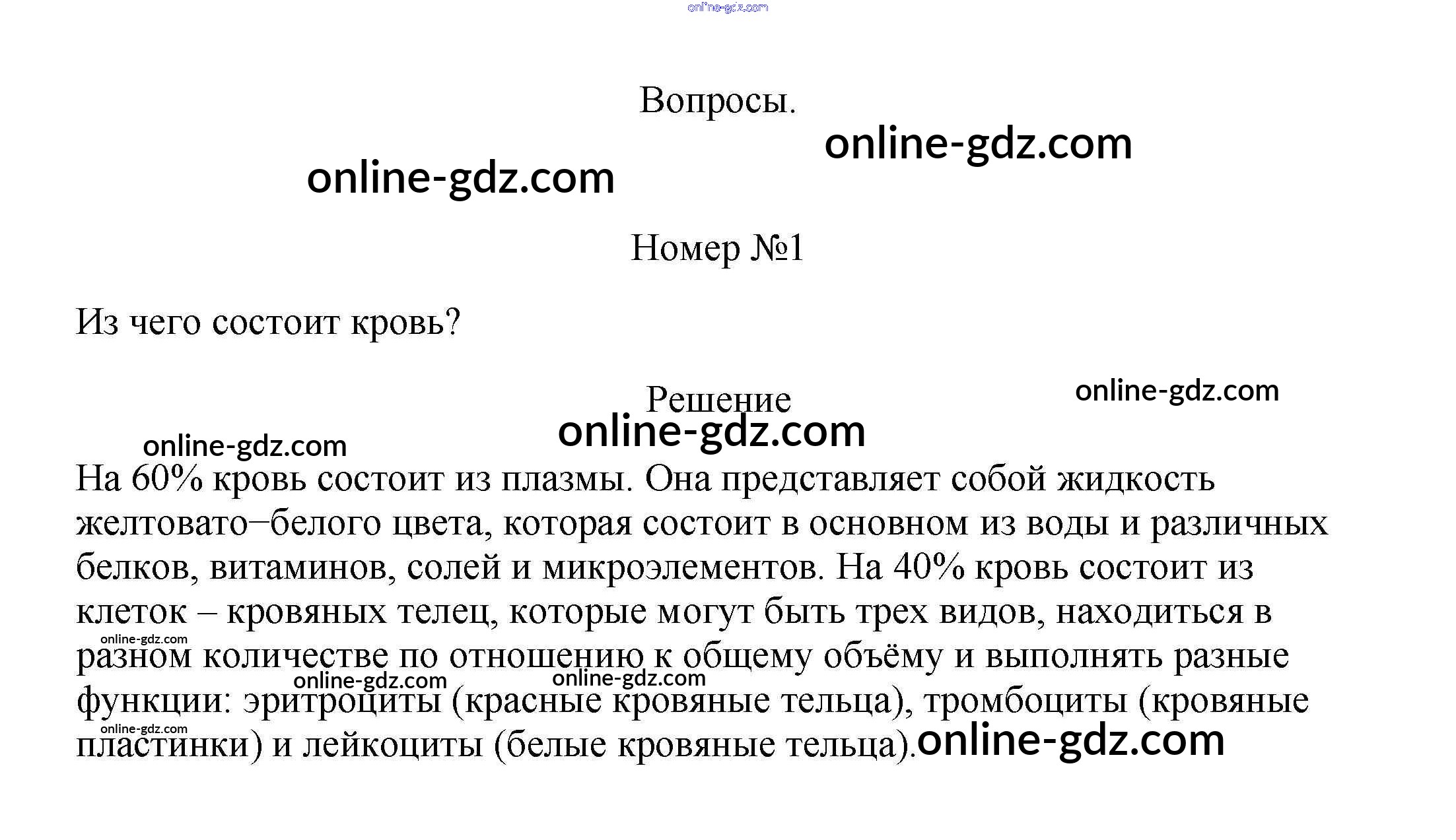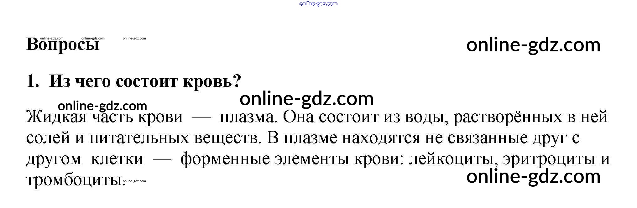 Готовые домашние задания по Биологии за 5, 6 класс Учебник Пасечник, Суматохин Линия жизни 2020 - Вопросы §34. Передвижение веществ у животных 1