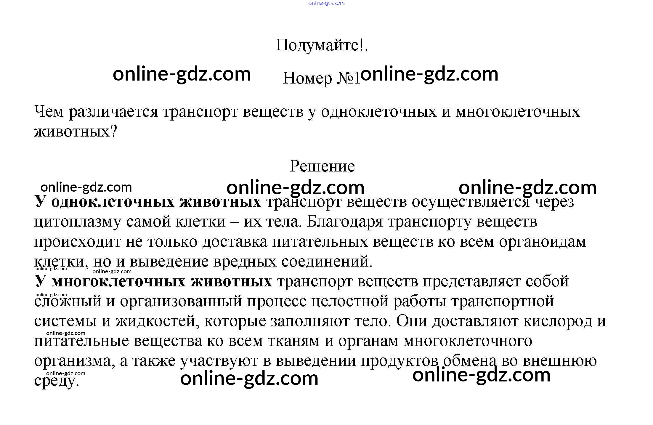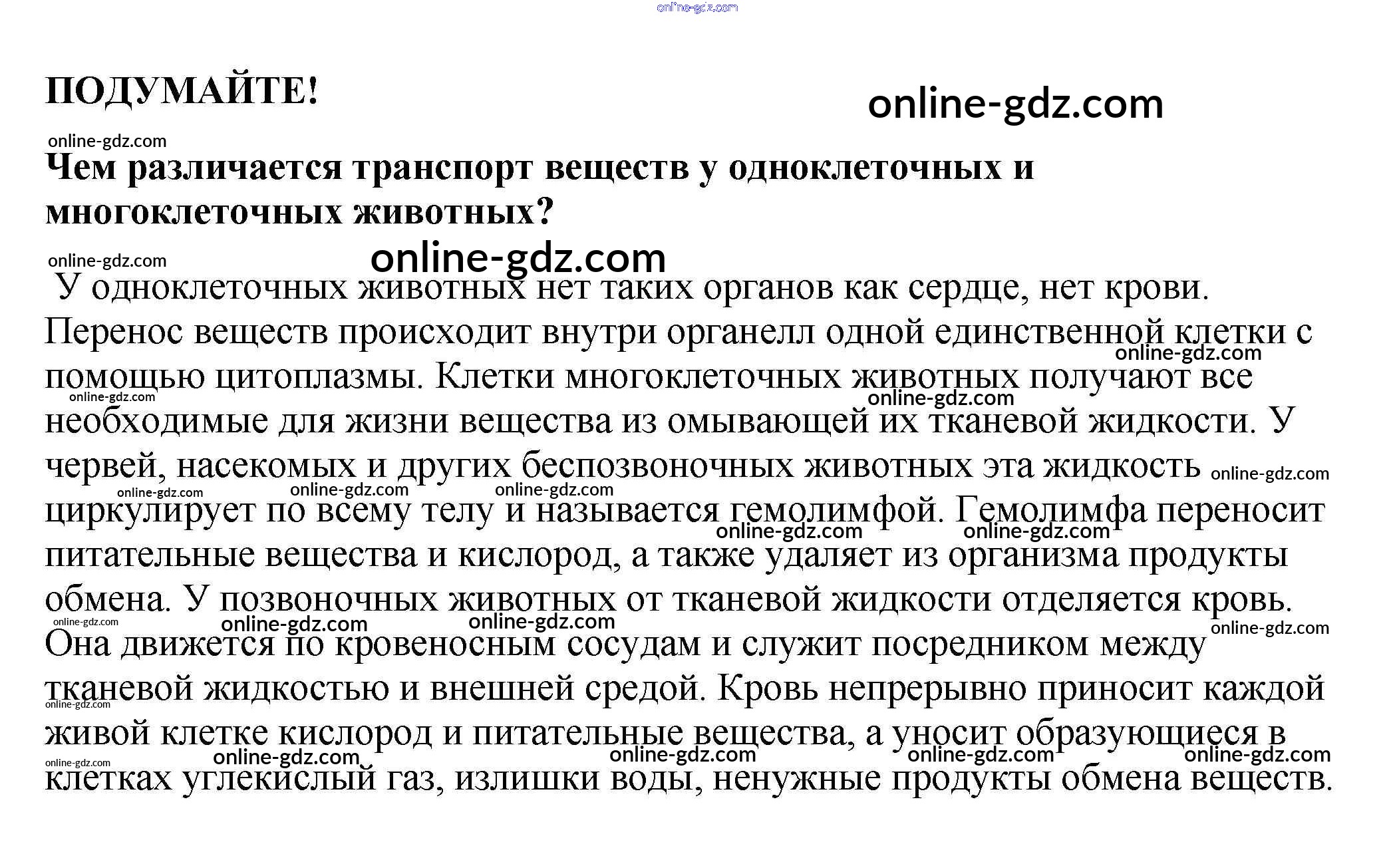 Готовые домашние задания по Биологии за 5, 6 класс Учебник Пасечник, Суматохин Линия жизни 2020 - Подумайте §34. Передвижение веществ у животных 1