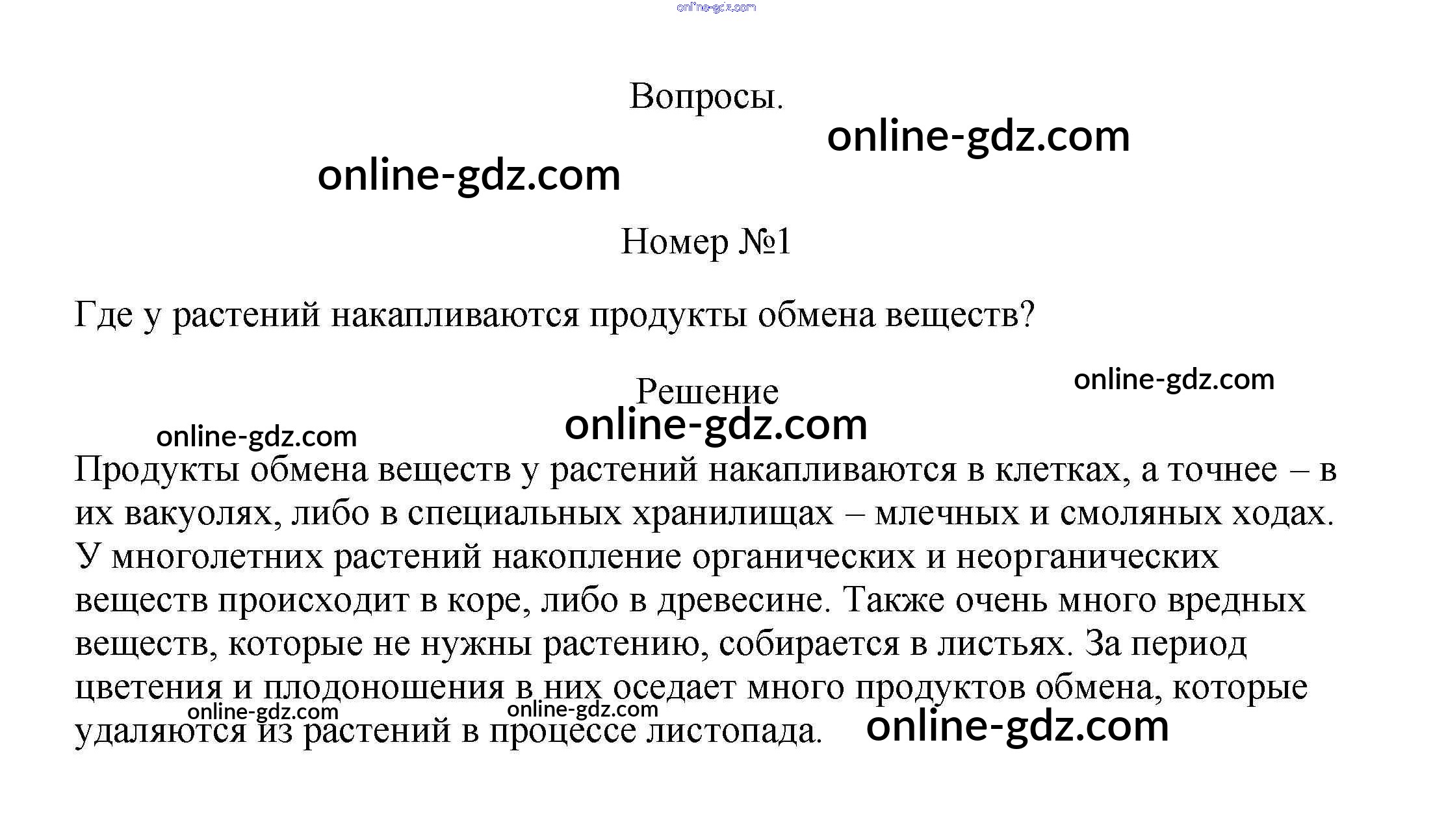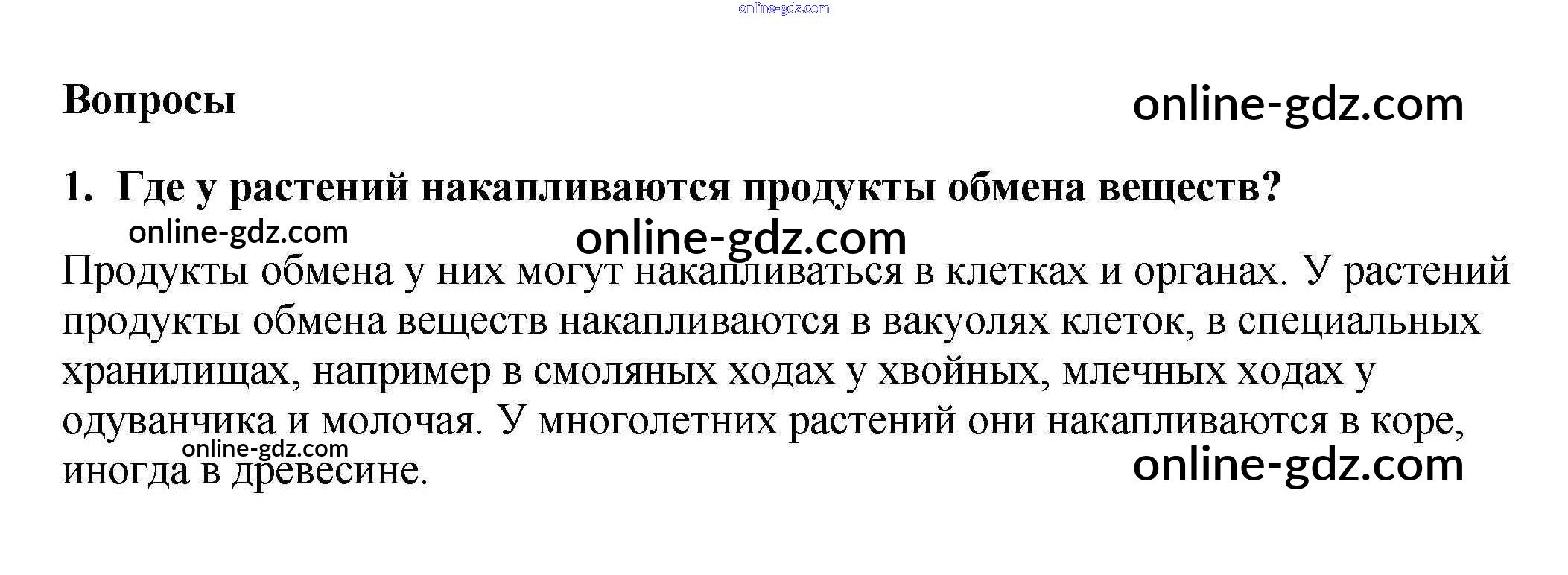 Готовые домашние задания по Биологии за 5, 6 класс Учебник Пасечник, Суматохин Линия жизни 2020 - Вопросы §35. Выделение у растений и животных 1