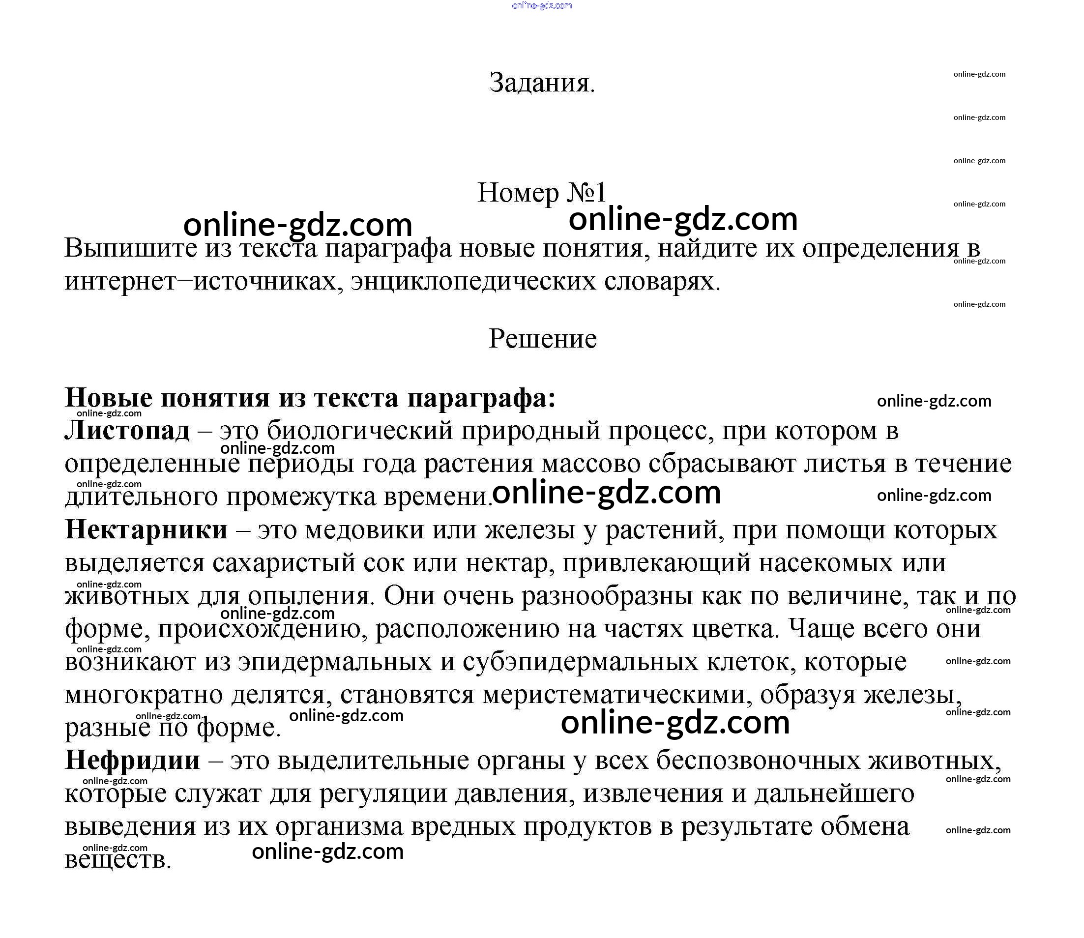 Готовые домашние задания по Биологии за 5, 6 класс Учебник Пасечник, Суматохин Линия жизни 2020 - Задания §35. Выделение у растений и животных 1