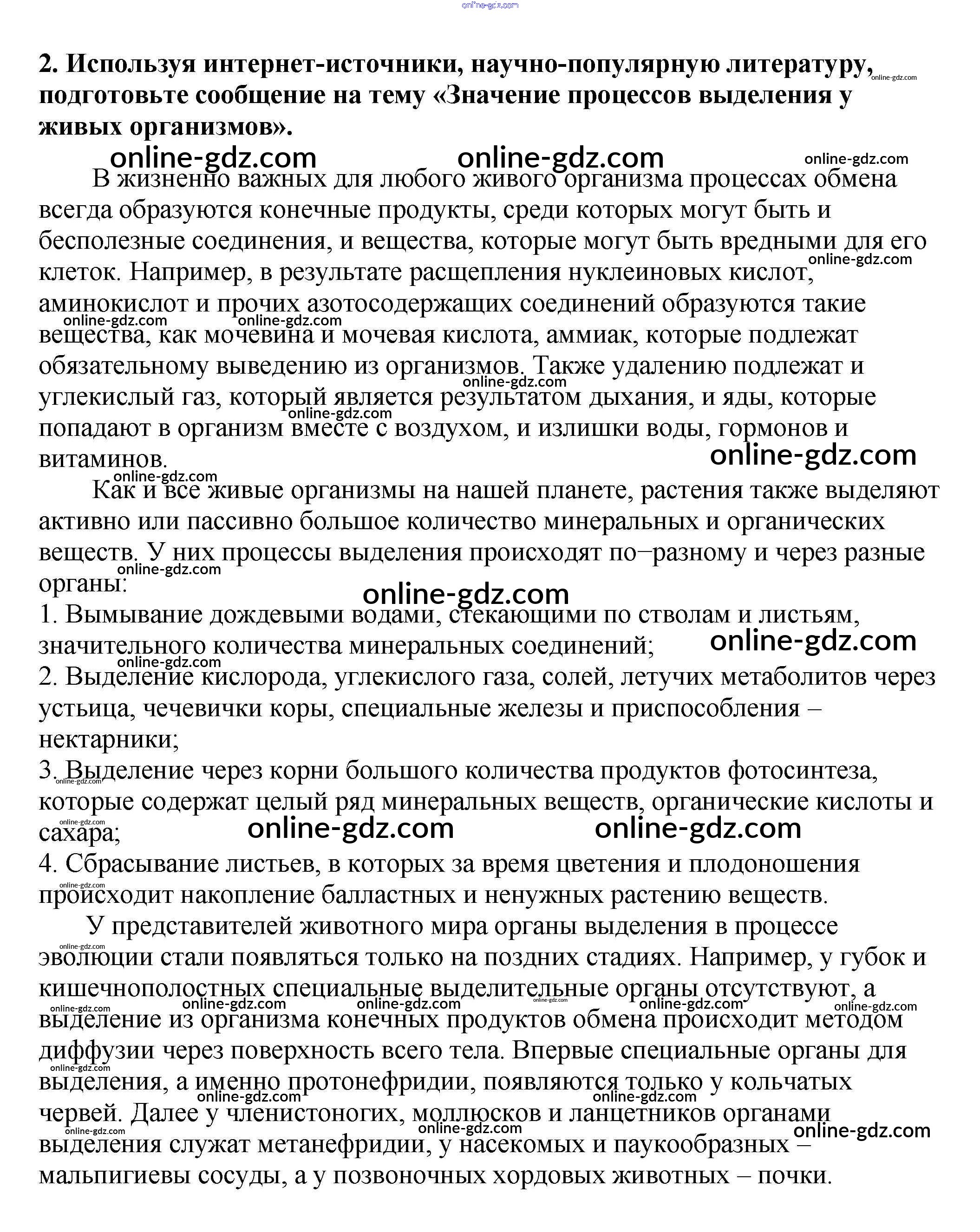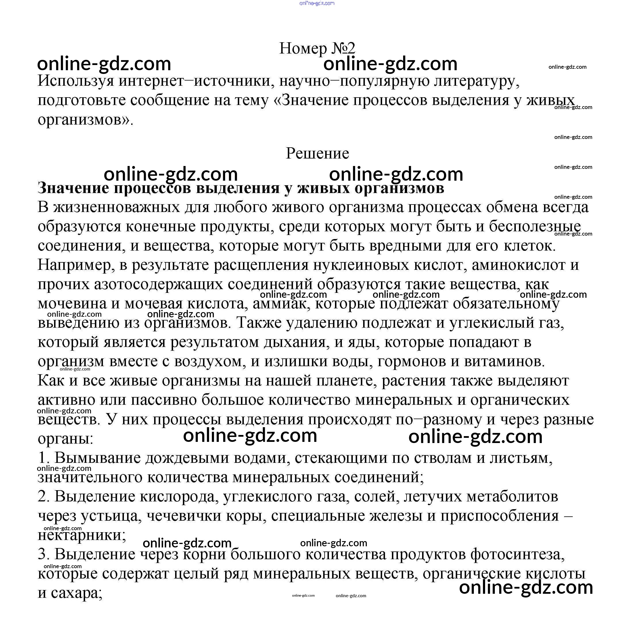 Готовые домашние задания по Биологии за 5, 6 класс Учебник Пасечник, Суматохин Линия жизни 2020 - Задания §35. Выделение у растений и животных 2