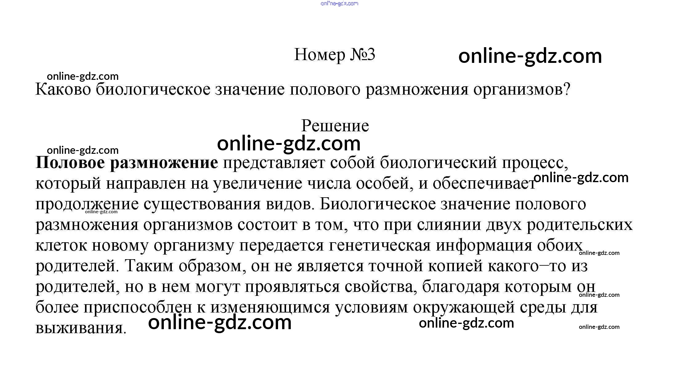 Готовые домашние задания по Биологии за 5, 6 класс Учебник Пасечник, Суматохин Линия жизни 2020 - Вопросы §36. Размножение организмов и его значение 3