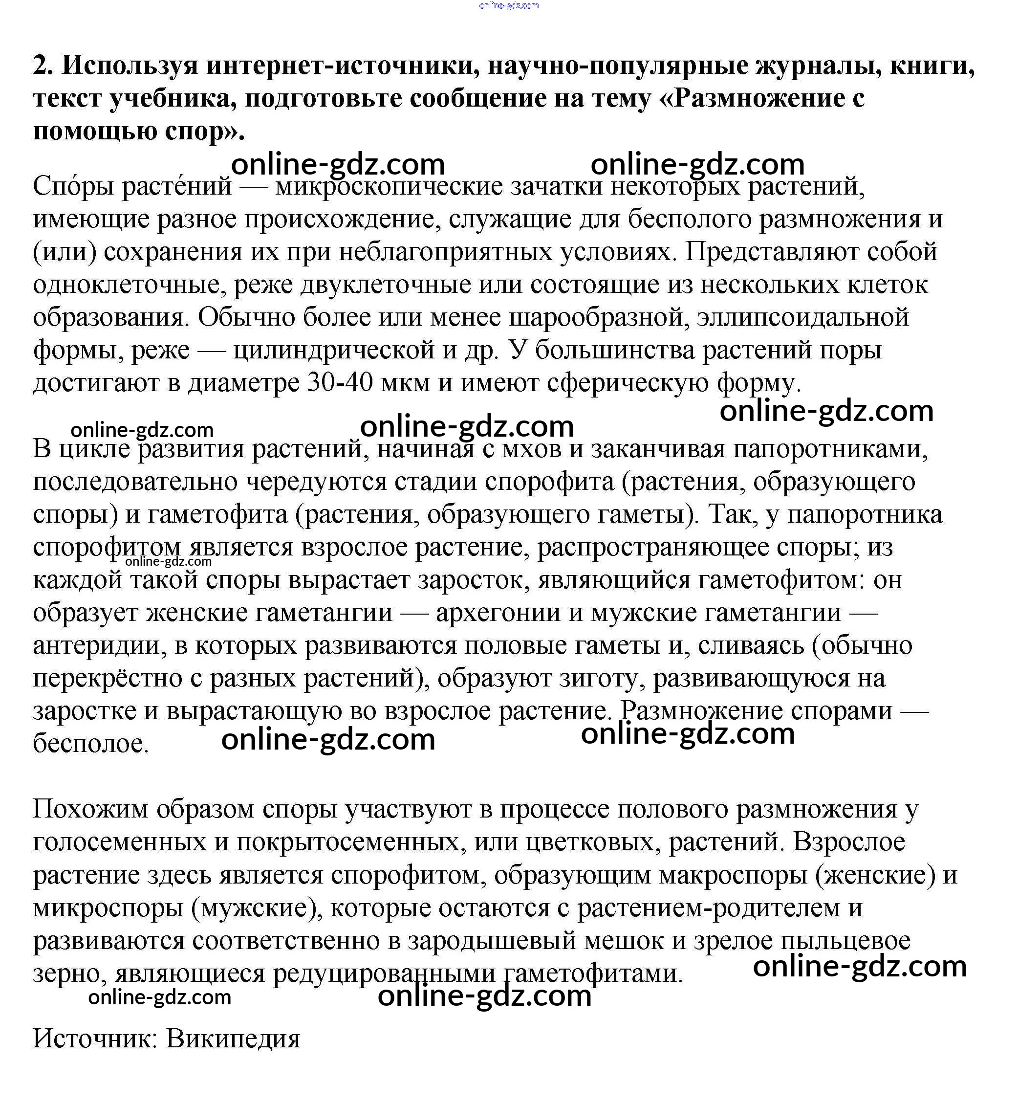 Готовые домашние задания по Биологии за 5, 6 класс Учебник Пасечник, Суматохин Линия жизни 2020 - Задания §36. Размножение организмов и его значение 2