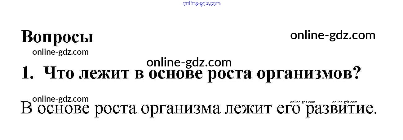 Готовые домашние задания по Биологии за 5, 6 класс Учебник Пасечник, Суматохин Линия жизни 2020 - Вопросы §37. Рост и развитие — свойства живых организмов 1