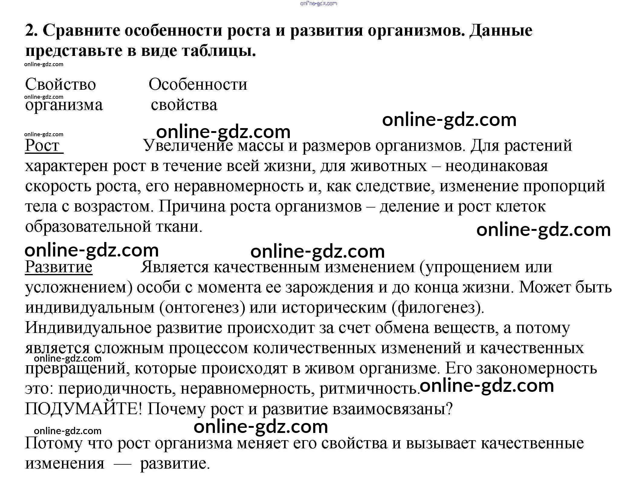 Готовые домашние задания по Биологии за 5, 6 класс Учебник Пасечник, Суматохин Линия жизни 2020 - Задания §37. Рост и развитие — свойства живых организмов 2