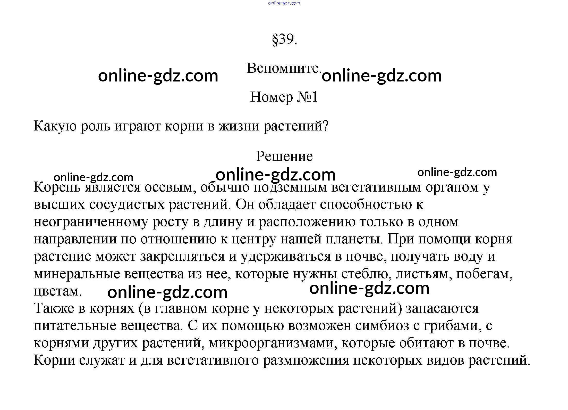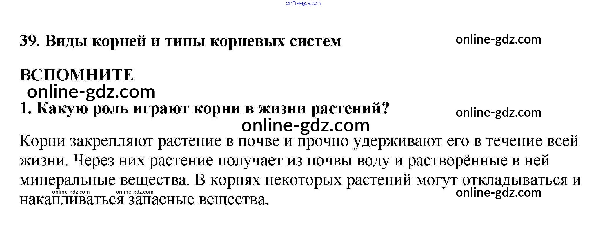Готовые домашние задания по Биологии за 5, 6 класс Учебник Пасечник, Суматохин Линия жизни 2020 - Вспомните §39. Виды корней и типы корневых систем 1