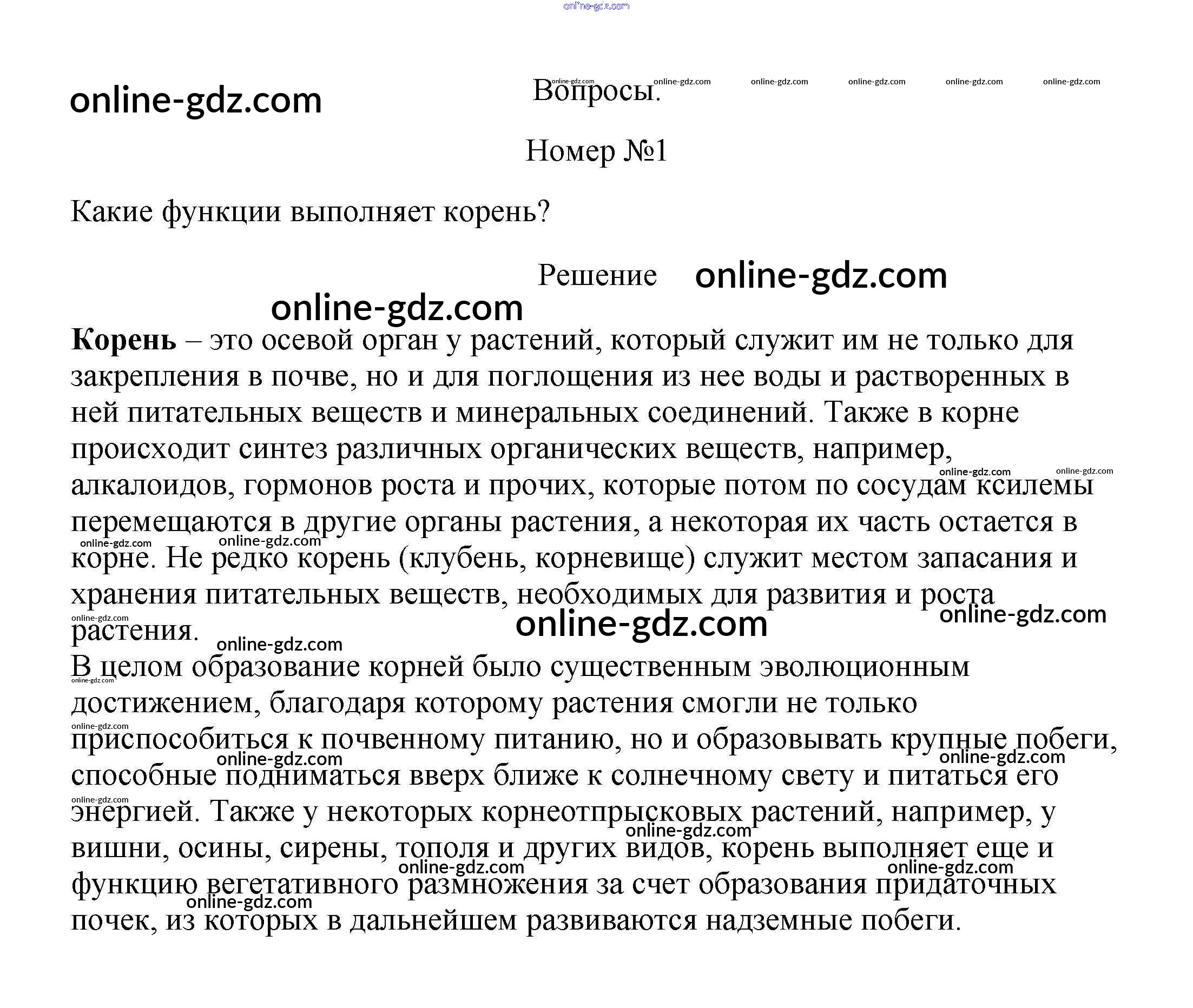 Готовые домашние задания по Биологии за 5, 6 класс Учебник Пасечник, Суматохин Линия жизни 2020 - Вопросы §39. Виды корней и типы корневых систем 1