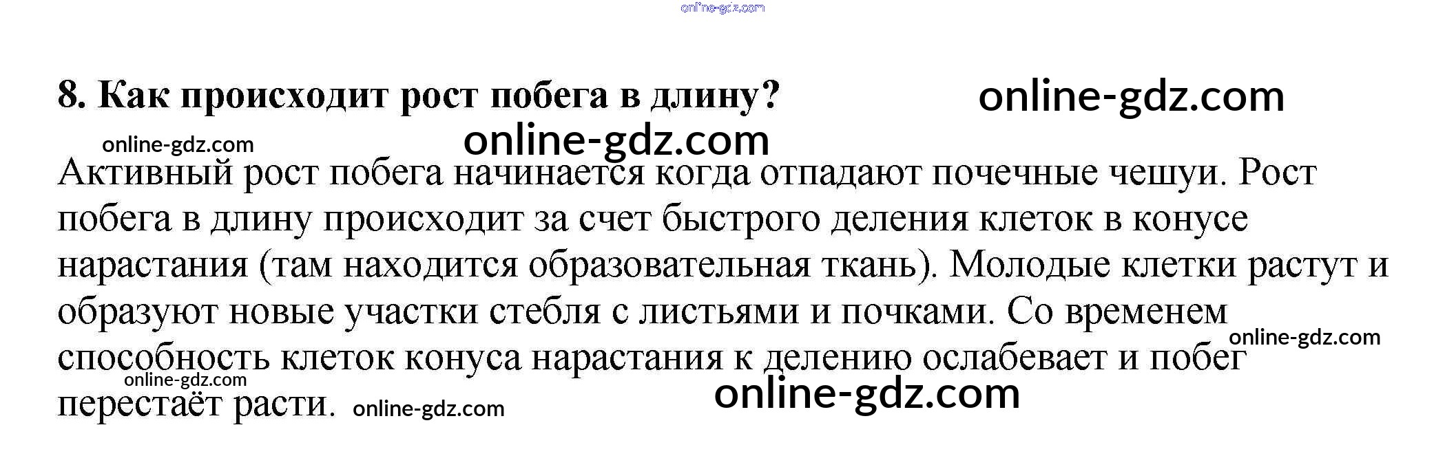 Готовые домашние задания по Биологии за 5, 6 класс Учебник Пасечник, Суматохин Линия жизни 2020 - Вопросы §41. Побег и почки 8