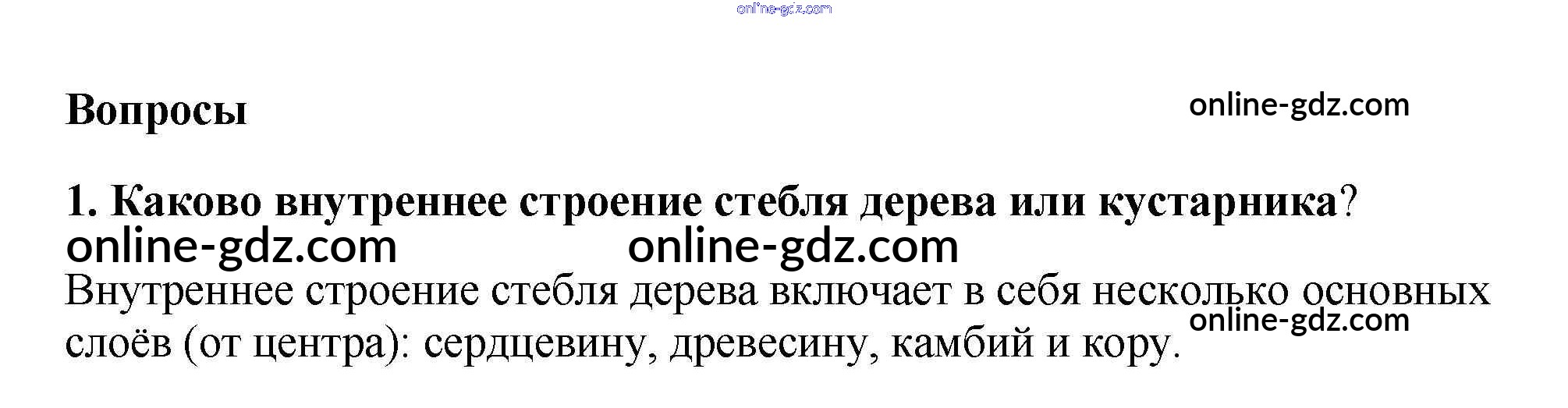 Готовые домашние задания по Биологии за 5, 6 класс Учебник Пасечник, Суматохин Линия жизни 2020 - Вопросы §42. Строение стебля 1