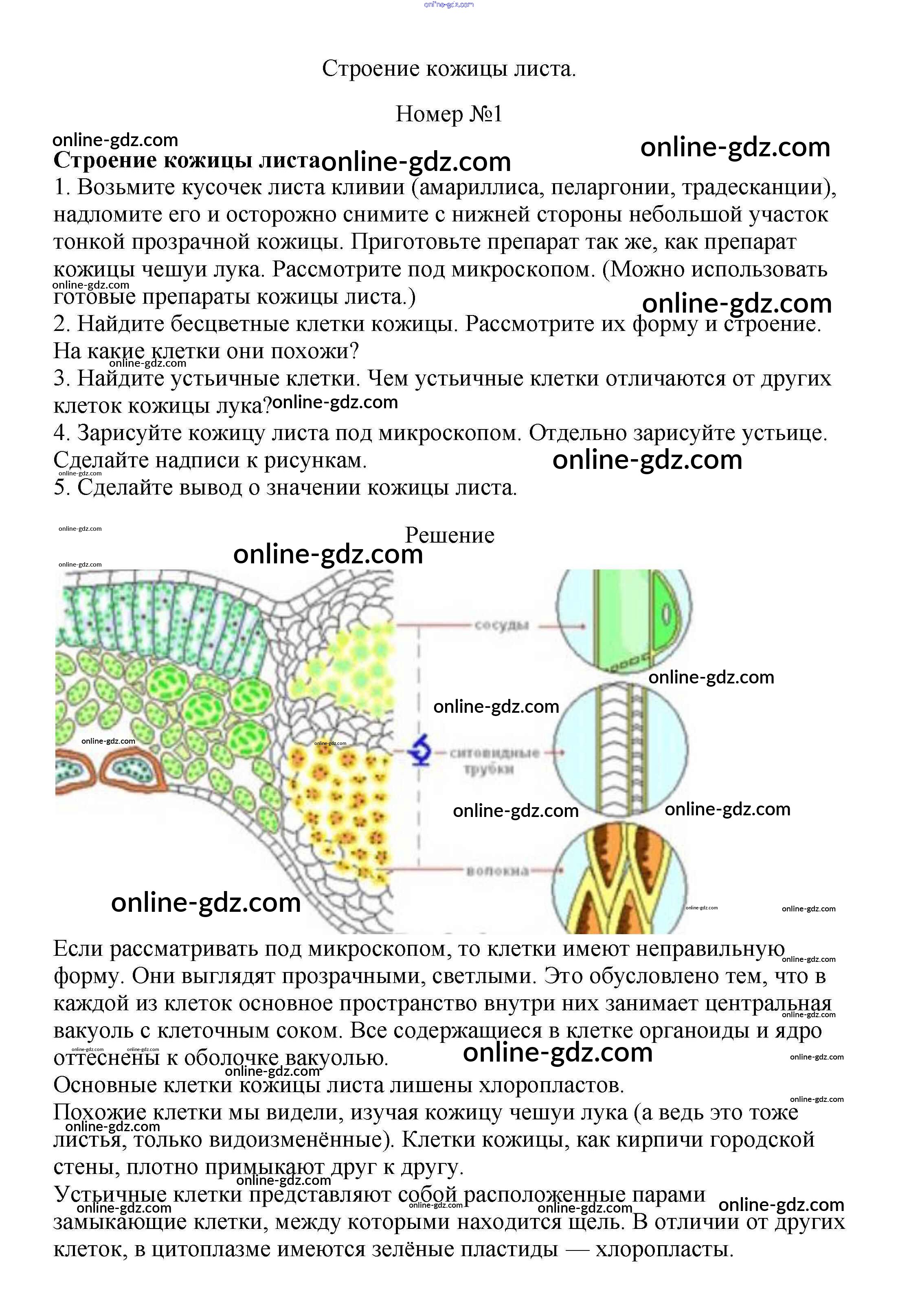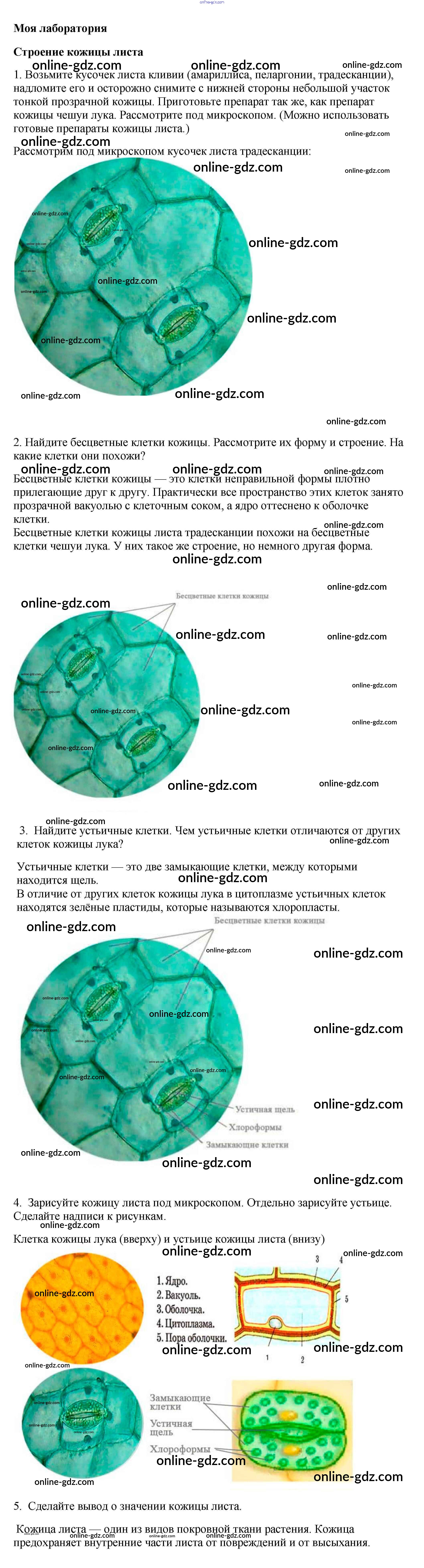 Готовые домашние задания по Биологии за 5, 6 класс Учебник Пасечник, Суматохин Линия жизни 2020 - Моя лаборатория §44. Клеточное строение листа 1