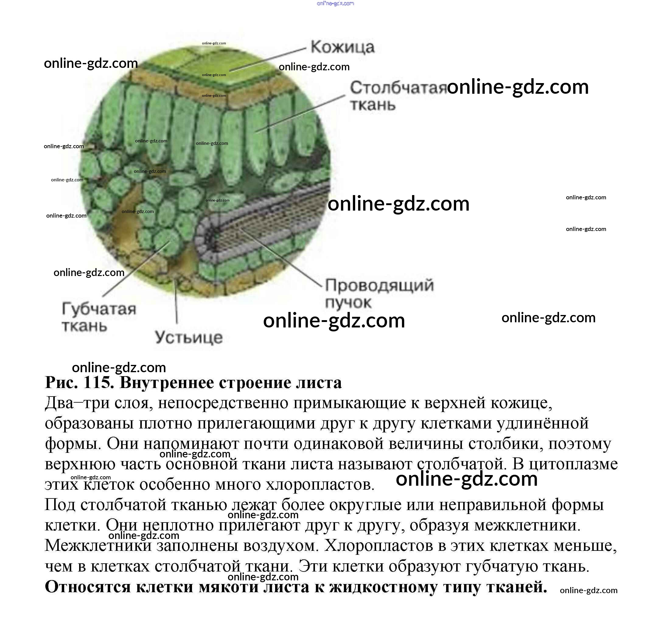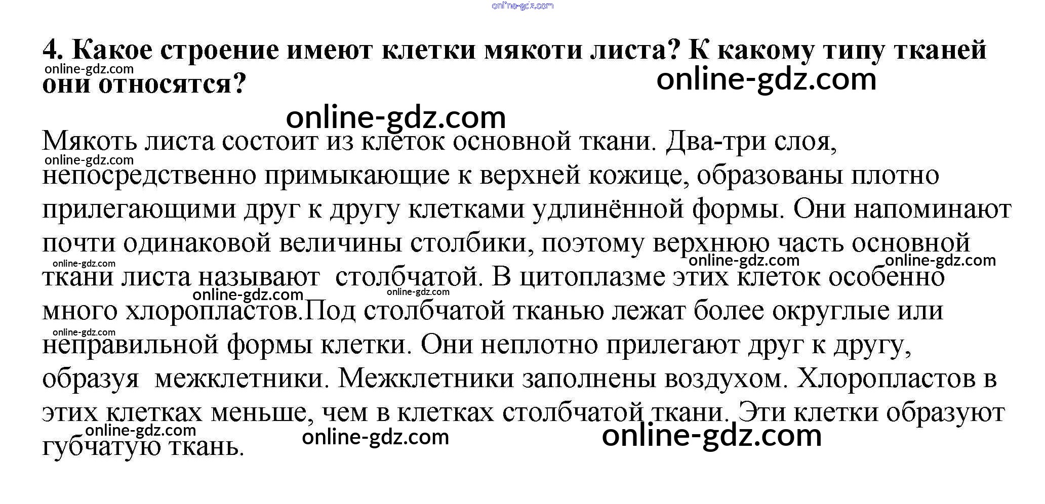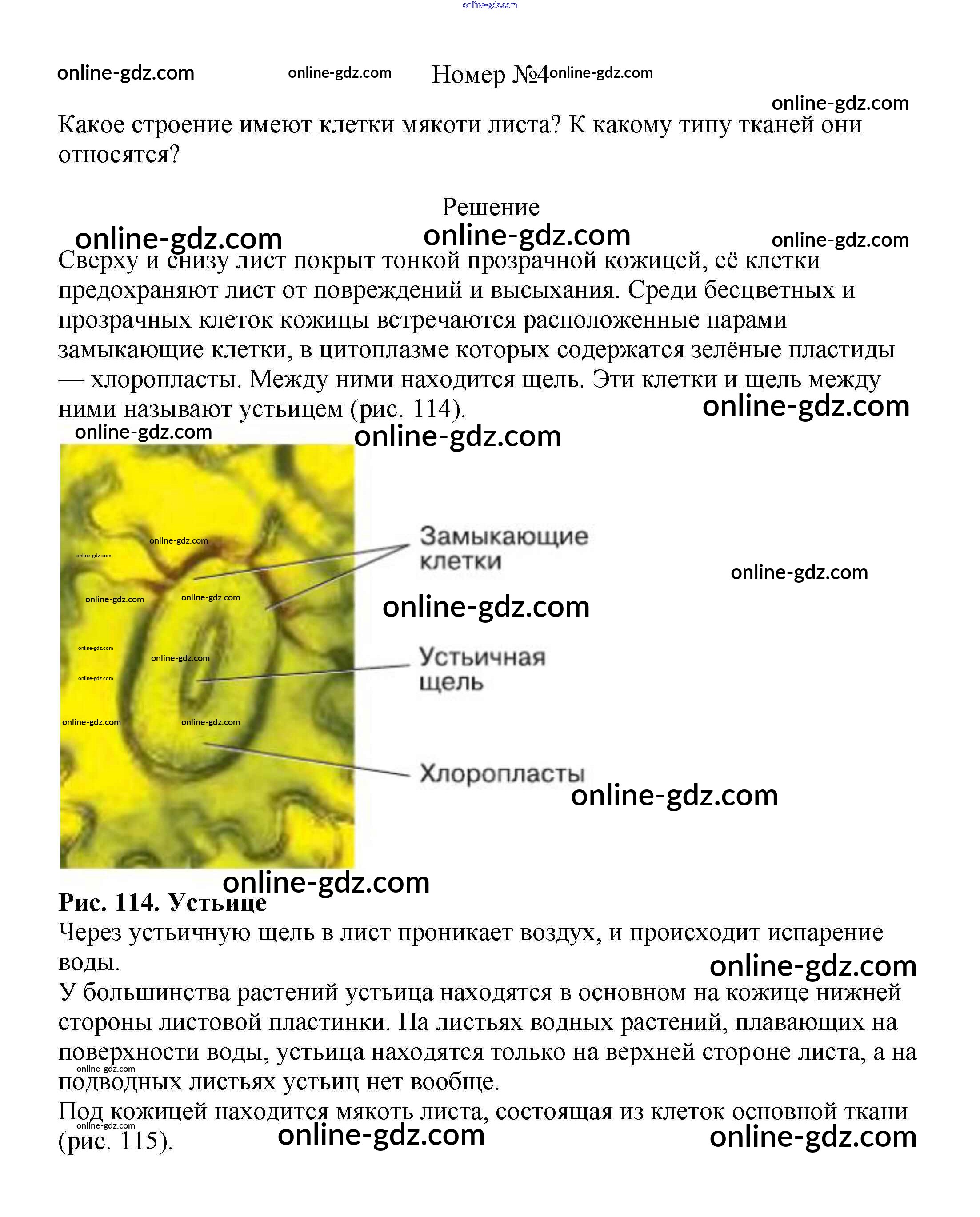 Готовые домашние задания по Биологии за 5, 6 класс Учебник Пасечник, Суматохин Линия жизни 2020 - Вопросы §44. Клеточное строение листа 4