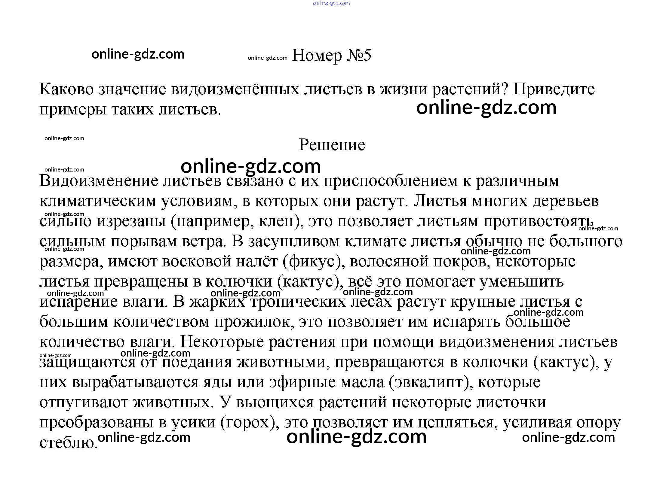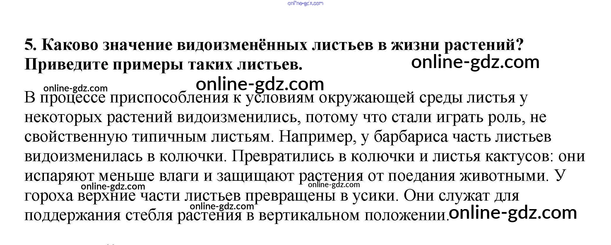 Готовые домашние задания по Биологии за 5, 6 класс Учебник Пасечник, Суматохин Линия жизни 2020 - Вопросы §44. Клеточное строение листа 5