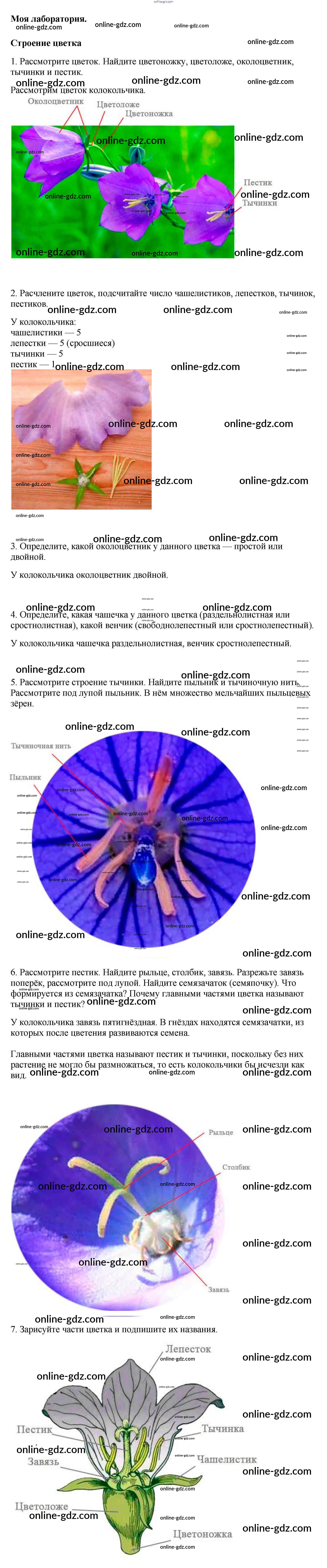 Готовые домашние задания по Биологии за 5, 6 класс Учебник Пасечник, Суматохин Линия жизни 2020 - Моя лаборатория §46. Строение и разнообразие цветков 1