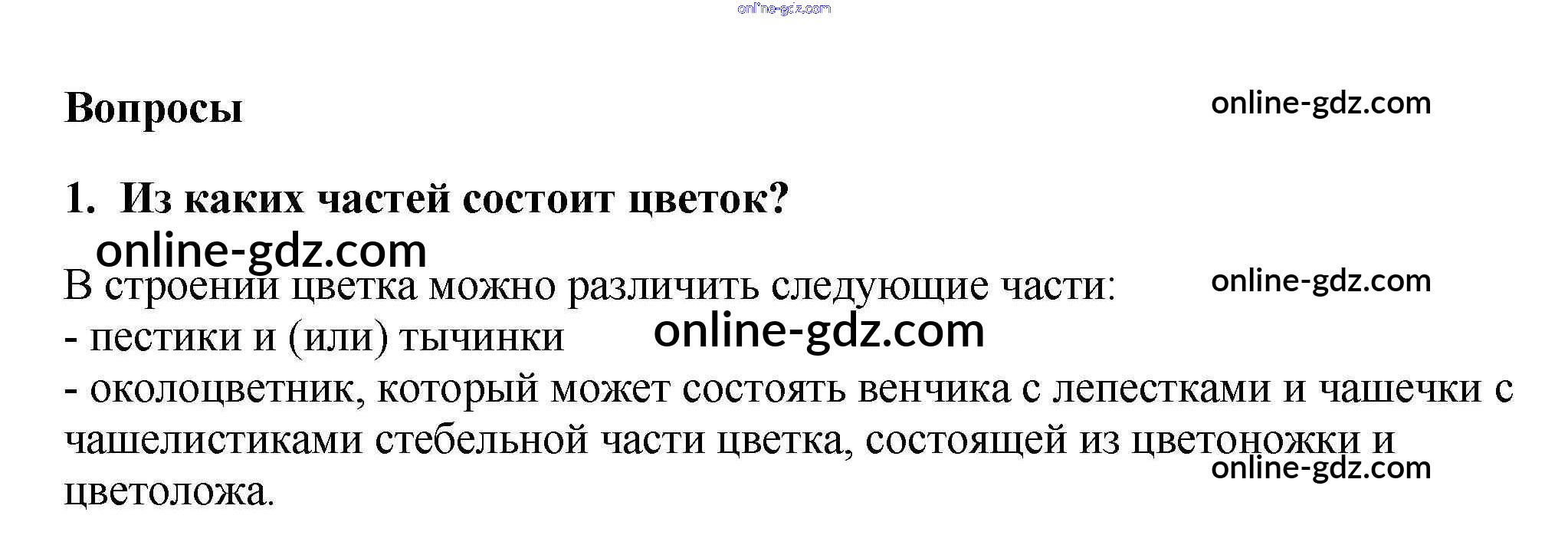 Готовые домашние задания по Биологии за 5, 6 класс Учебник Пасечник, Суматохин Линия жизни 2020 - Вопросы §46. Строение и разнообразие цветков 1