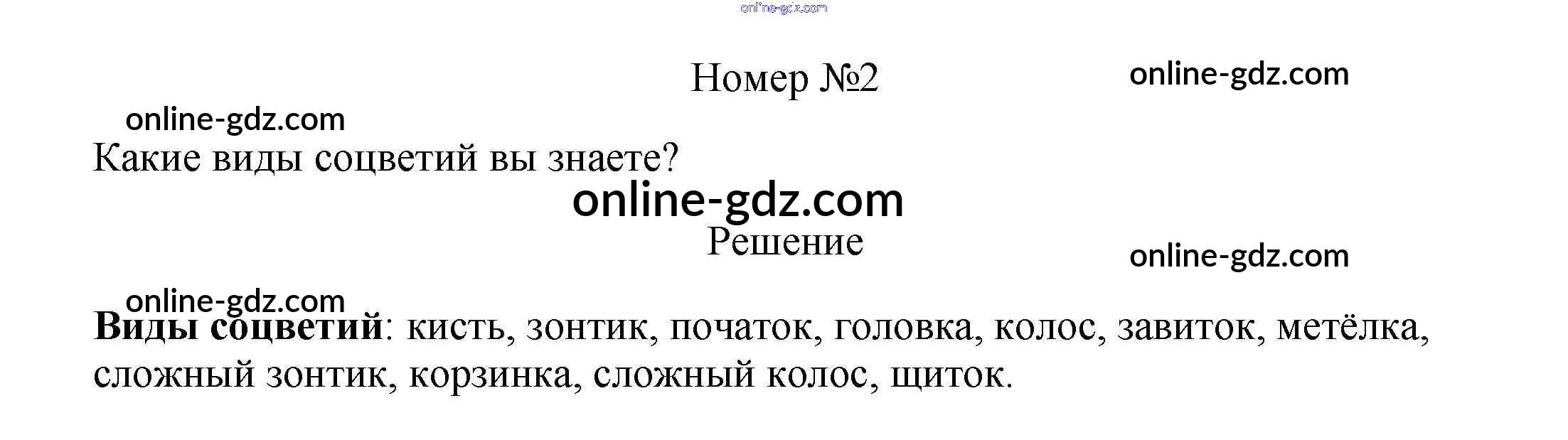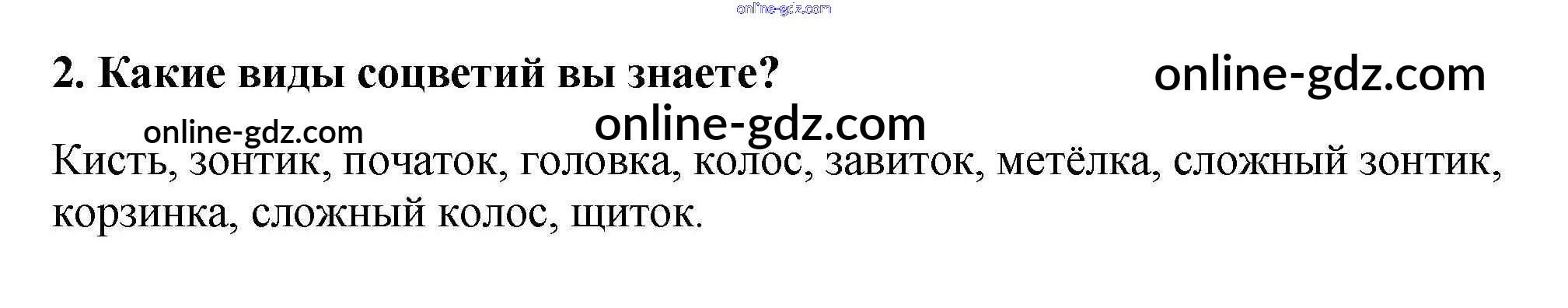 Готовые домашние задания по Биологии за 5, 6 класс Учебник Пасечник, Суматохин Линия жизни 2020 - Вопросы §47. Соцветия 2