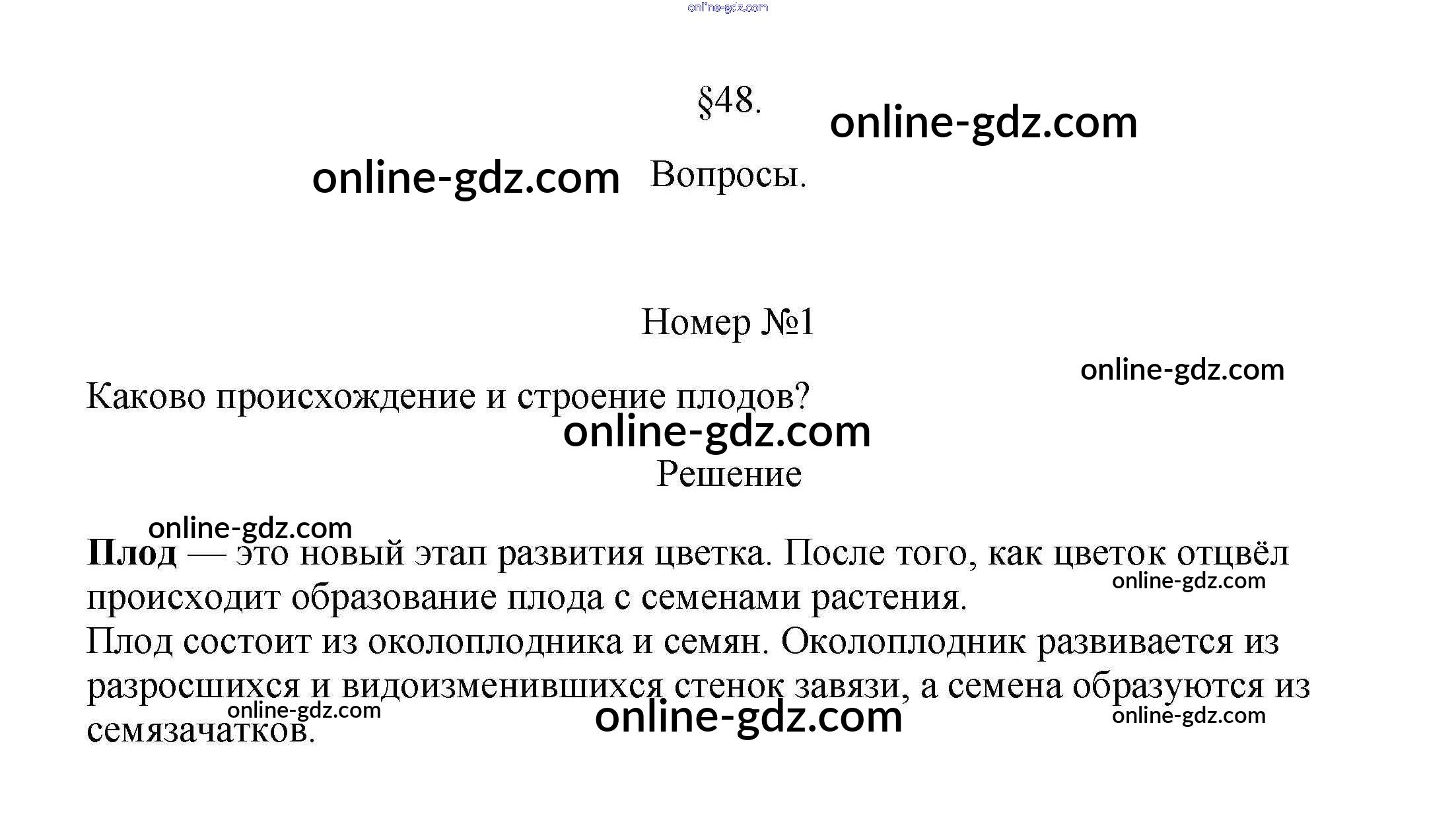 Готовые домашние задания по Биологии за 5, 6 класс Учебник Пасечник, Суматохин Линия жизни 2020 - Вопросы §48. Плоды 1