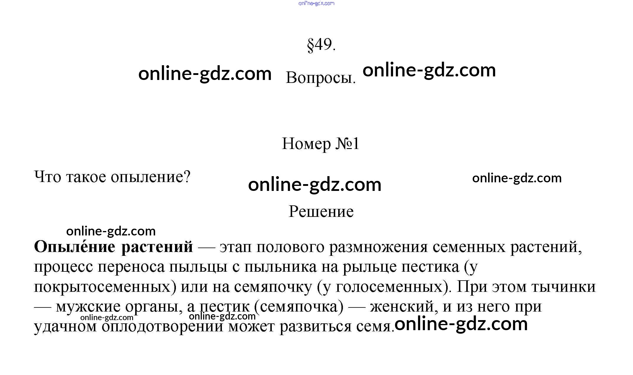 Готовые домашние задания по Биологии за 5, 6 класс Учебник Пасечник, Суматохин Линия жизни 2020 - Вопросы §49. Размножение покрытосеменных растений 1