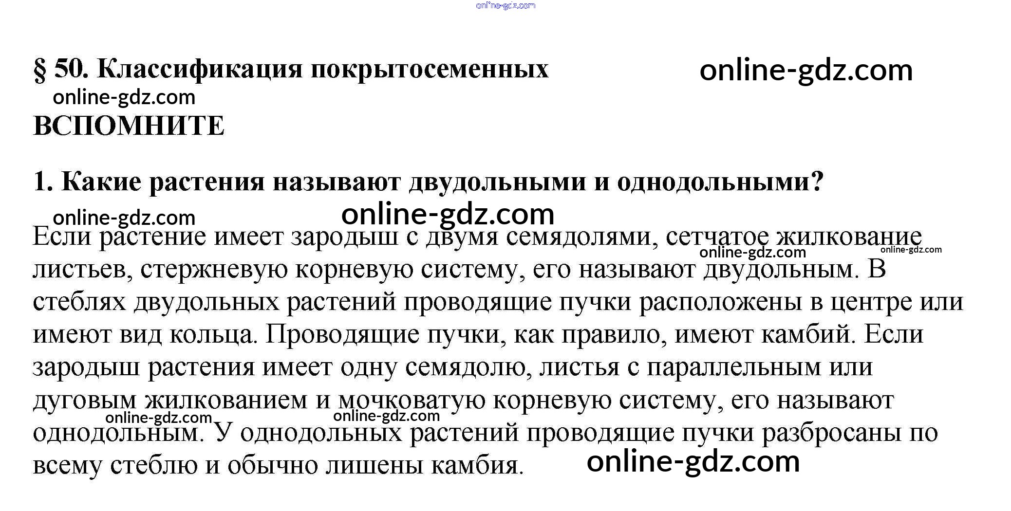 Готовые домашние задания по Биологии за 5, 6 класс Учебник Пасечник, Суматохин Линия жизни 2020 - Вспомните §50. Классификация покрытосеменных 1