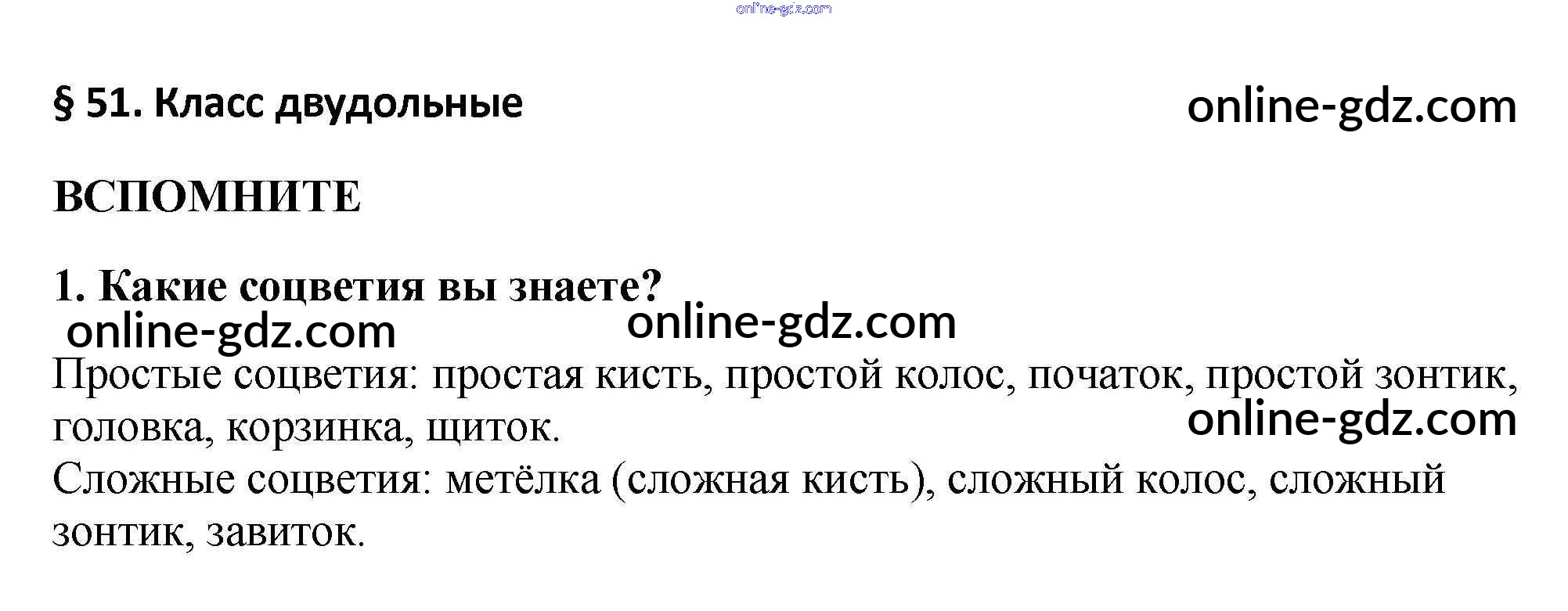 Готовые домашние задания по Биологии за 5, 6 класс Учебник Пасечник, Суматохин Линия жизни 2020 - Вспомните §51. Класс Двудольные 1