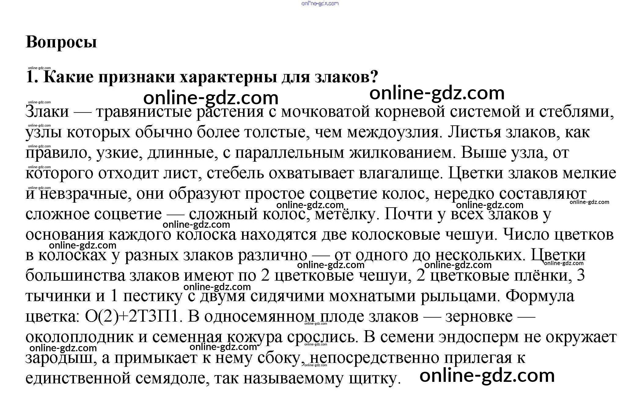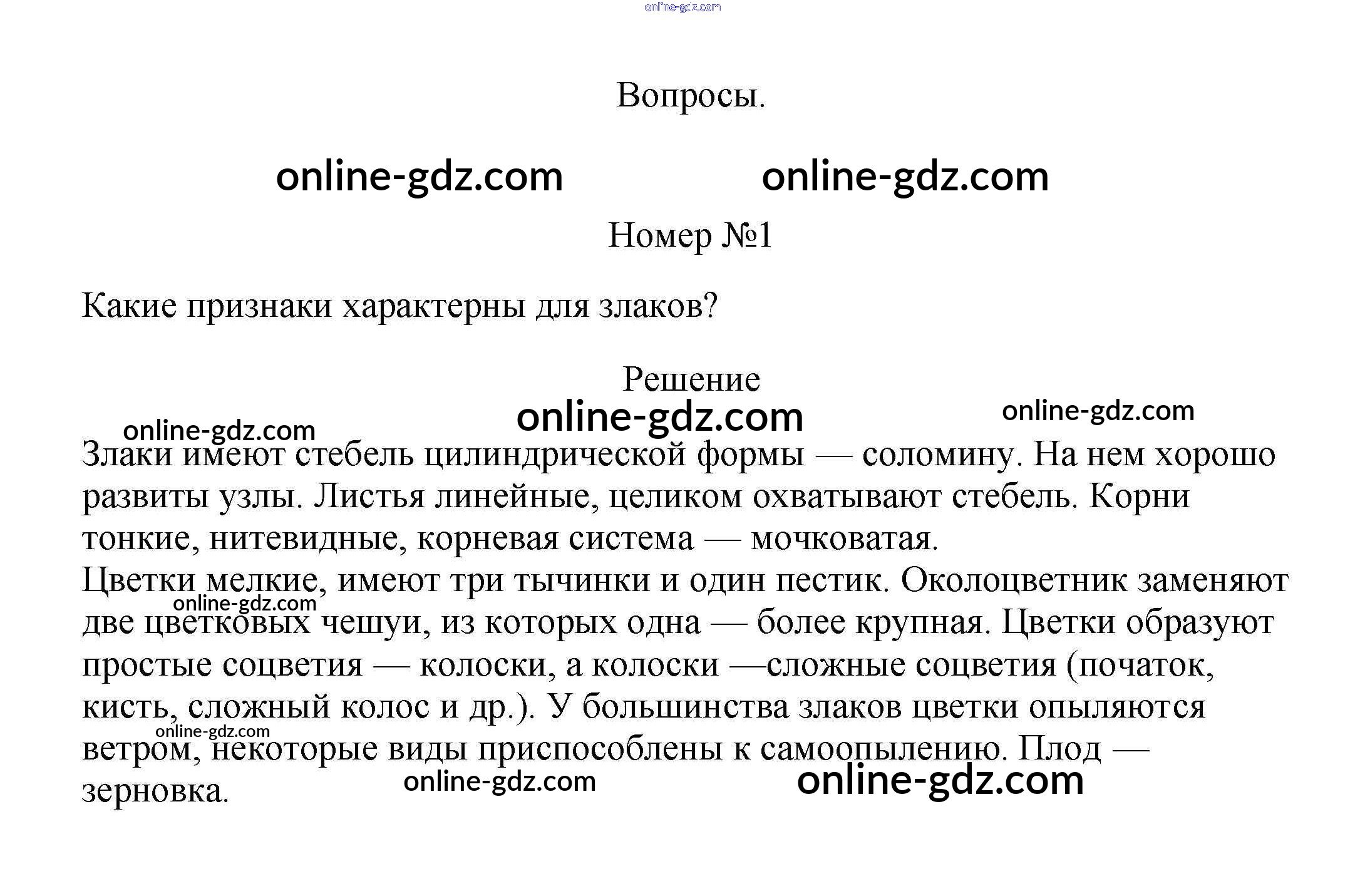 Готовые домашние задания по Биологии за 5, 6 класс Учебник Пасечник, Суматохин Линия жизни 2020 - Вопросы §52. Класс Однодольные 1