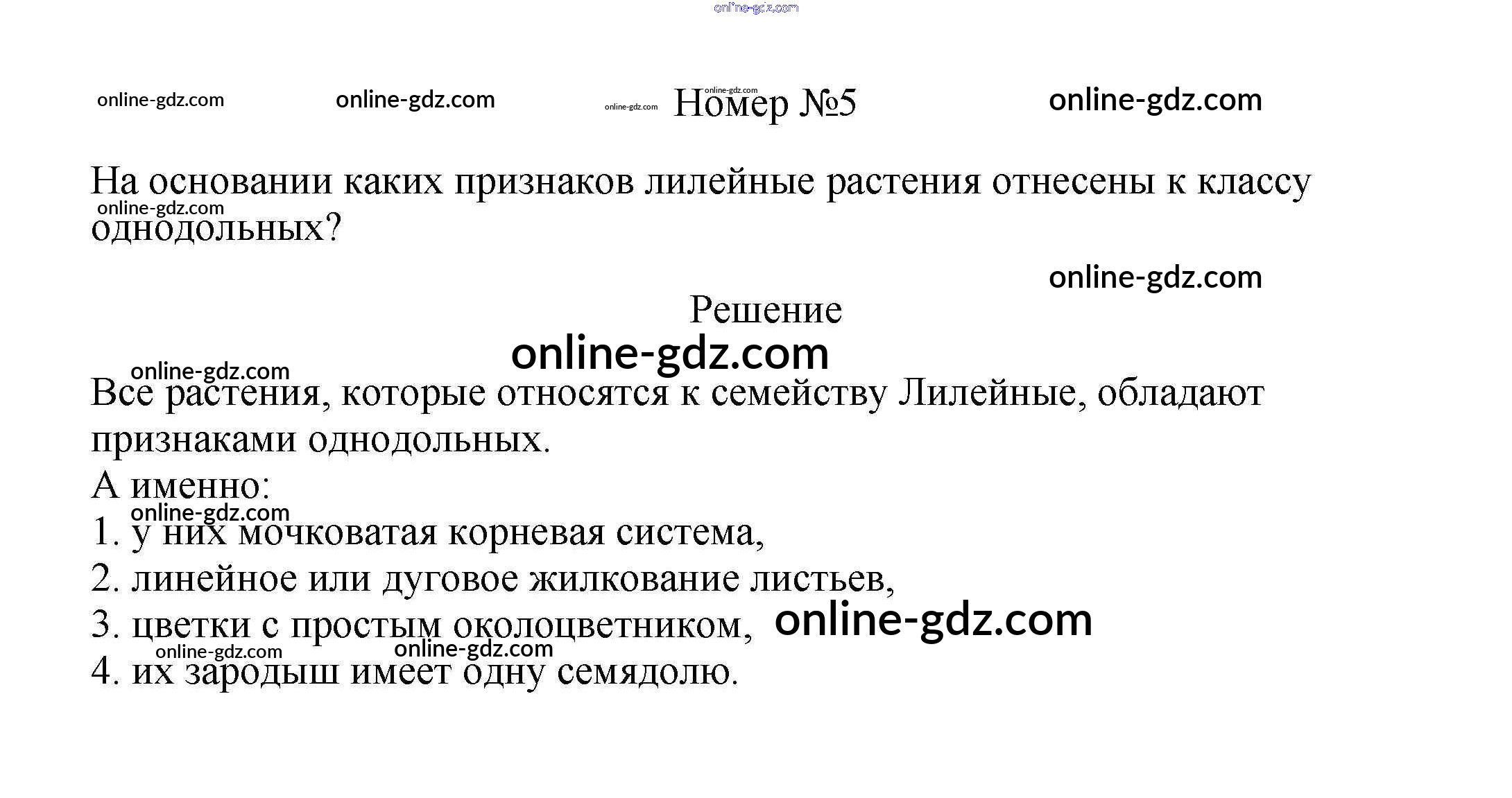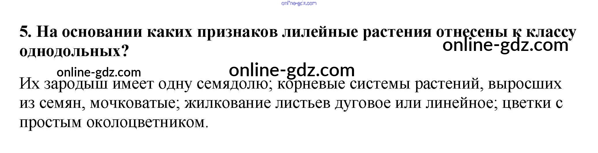 Готовые домашние задания по Биологии за 5, 6 класс Учебник Пасечник, Суматохин Линия жизни 2020 - Вопросы §52. Класс Однодольные 5