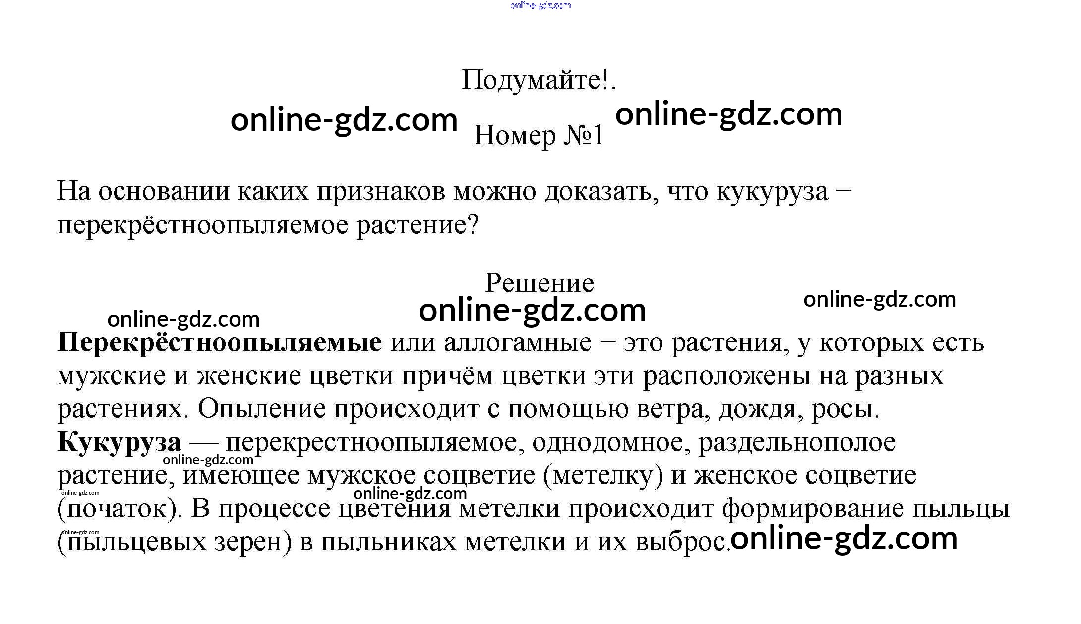 Готовые домашние задания по Биологии за 5, 6 класс Учебник Пасечник, Суматохин Линия жизни 2020 - Подумайте §52. Класс Однодольные 1