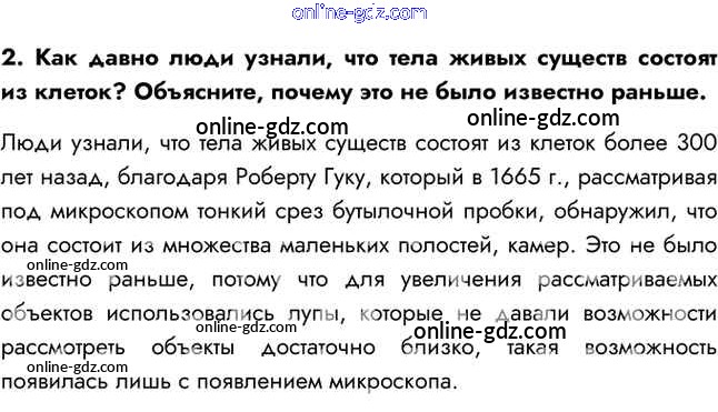 Готовые домашние задания по Биологии за 5 класс Учебник Сивоглазов, Плешаков 2020 - §5. Живые клетки 2