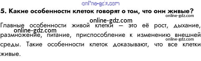 Готовые домашние задания по Биологии за 5 класс Учебник Сивоглазов, Плешаков 2020 - §5. Живые клетки 5
