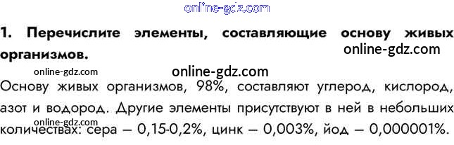 Готовые домашние задания по Биологии за 5 класс Учебник Сивоглазов, Плешаков 2020 - §6. Химический состав клетки 1