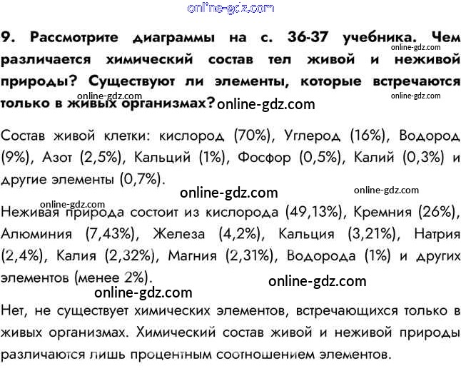 Готовые домашние задания по Биологии за 5 класс Учебник Сивоглазов, Плешаков 2020 - §6. Химический состав клетки 9