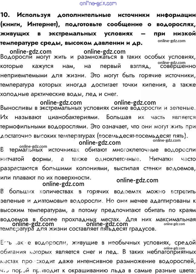 Готовые домашние задания по Биологии за 5 класс Учебник Сивоглазов, Плешаков 2020 - §13. Водоросли 10