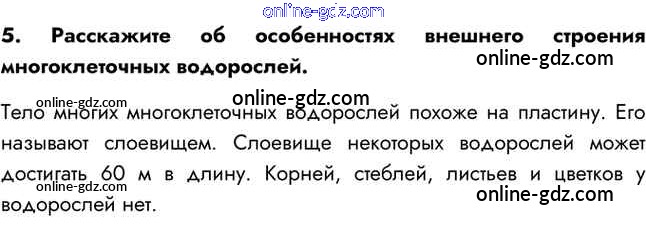 Готовые домашние задания по Биологии за 5 класс Учебник Сивоглазов, Плешаков 2020 - §13. Водоросли 5