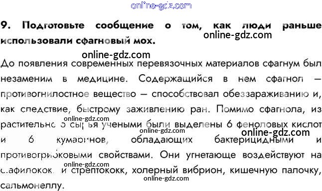 Готовые домашние задания по Биологии за 5 класс Учебник Сивоглазов, Плешаков 2020 - §14. Мхи 9