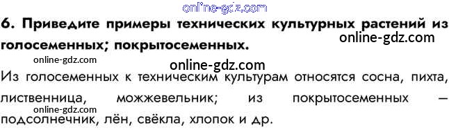 Готовые домашние задания по Биологии за 5 класс Учебник Сивоглазов, Плешаков 2020 - §18. Значение растений в природе и жизни человека 6